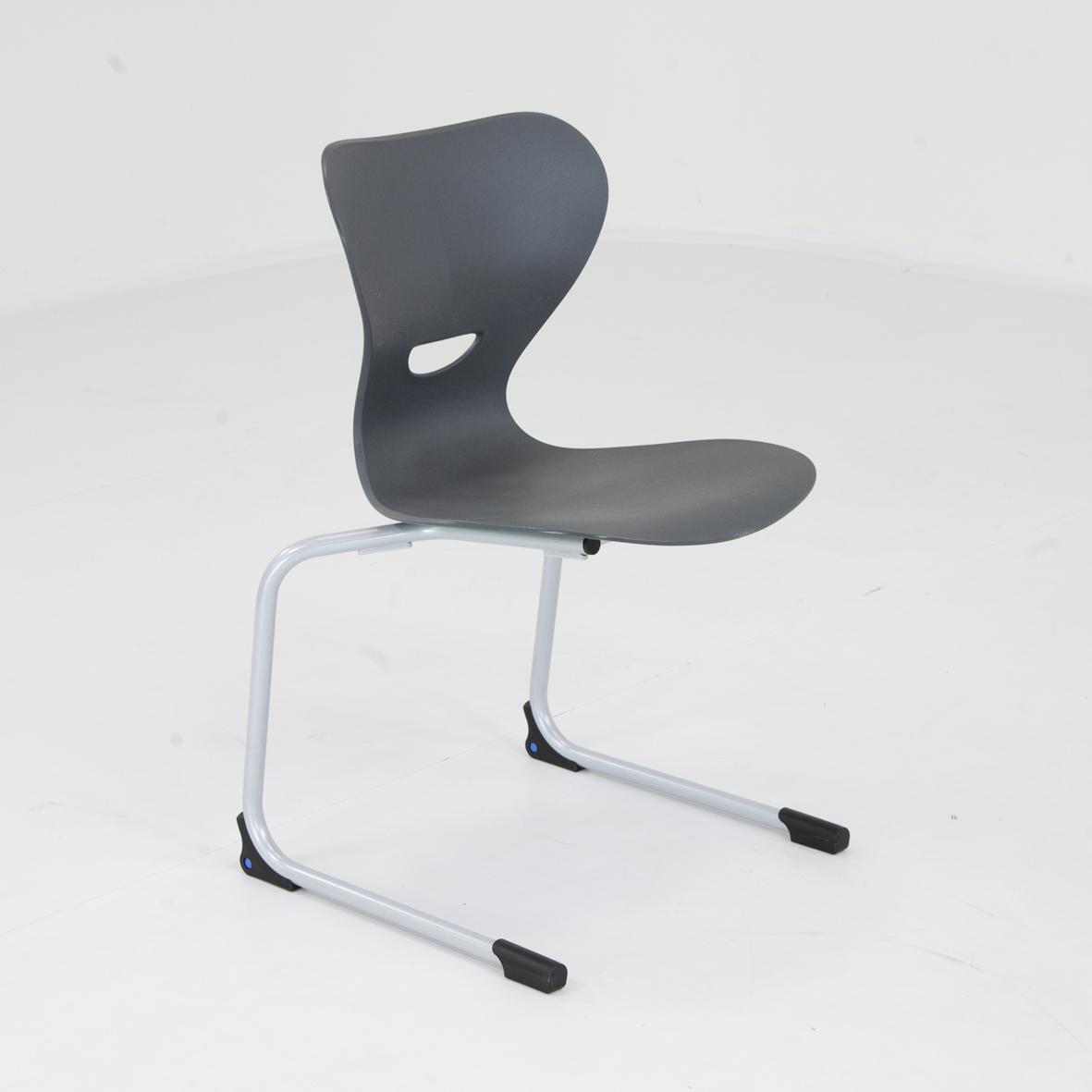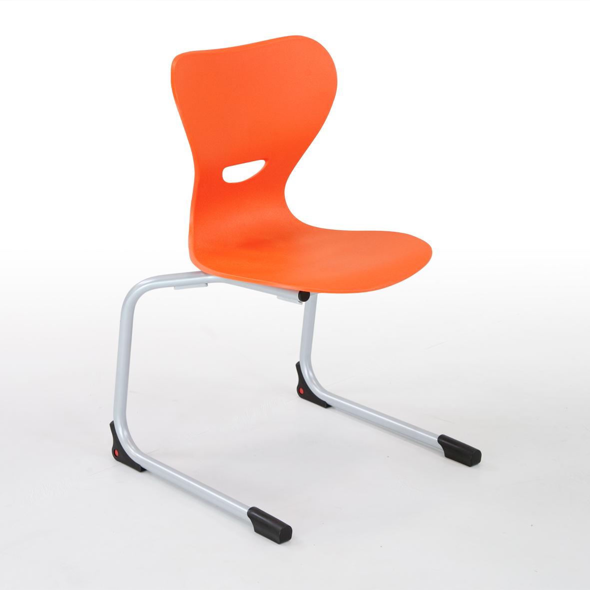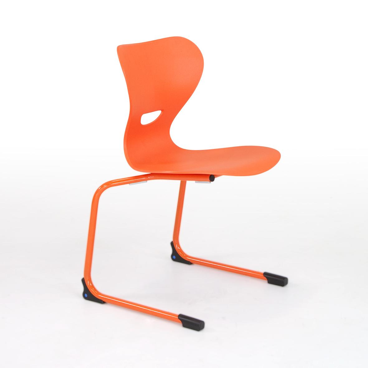 Stapelbarer Freischwinger Schülerstuhl mit ergonomisch geformter Kunststoff Sitzschale, mit GrifflochProduktbeschreibung