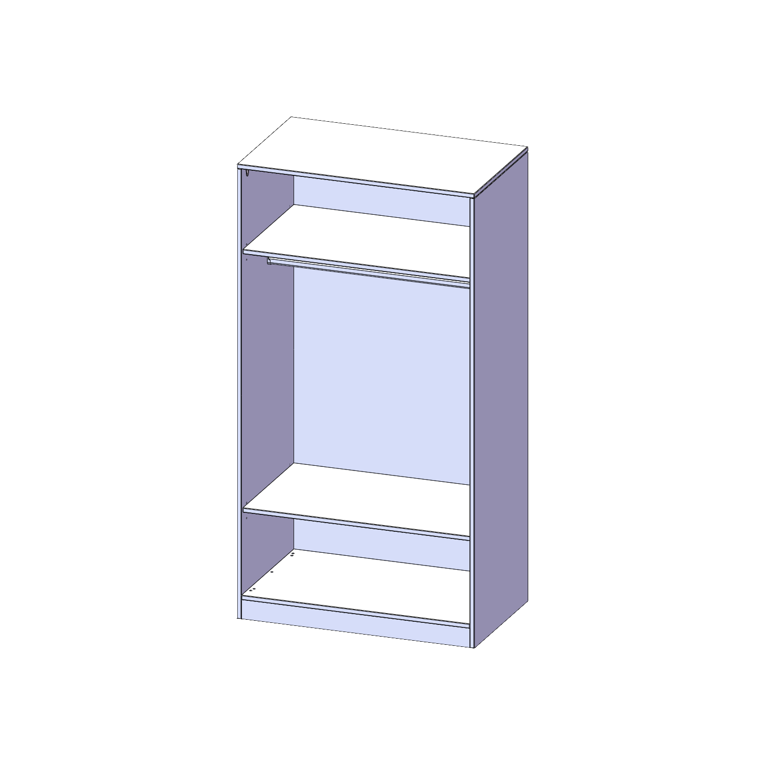 Im Regal befinden sich 2 Einlegeböden (Hut- und Schuhablage) sowie eine Kleiderstange.