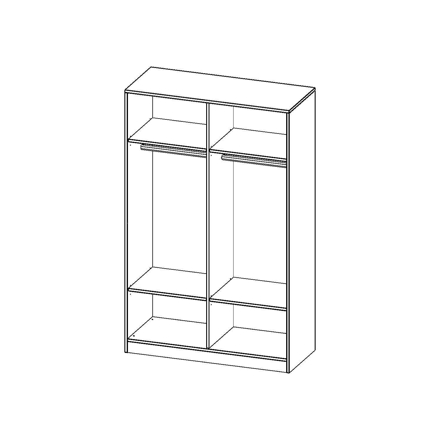 Im Regal befinden sich 2 Einlegeböden (Hut- und Schuhablage) sowie eine Kleiderstange.