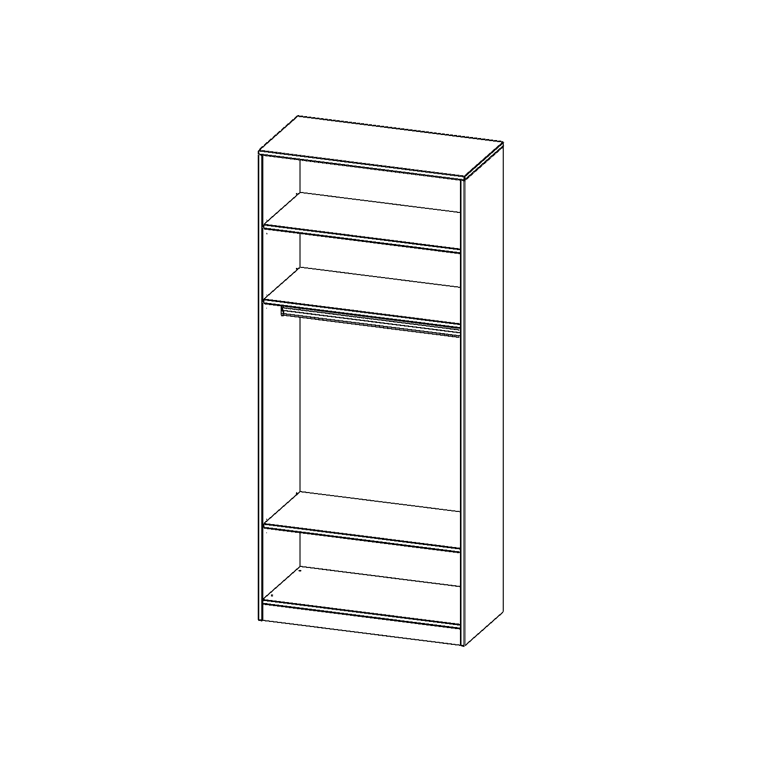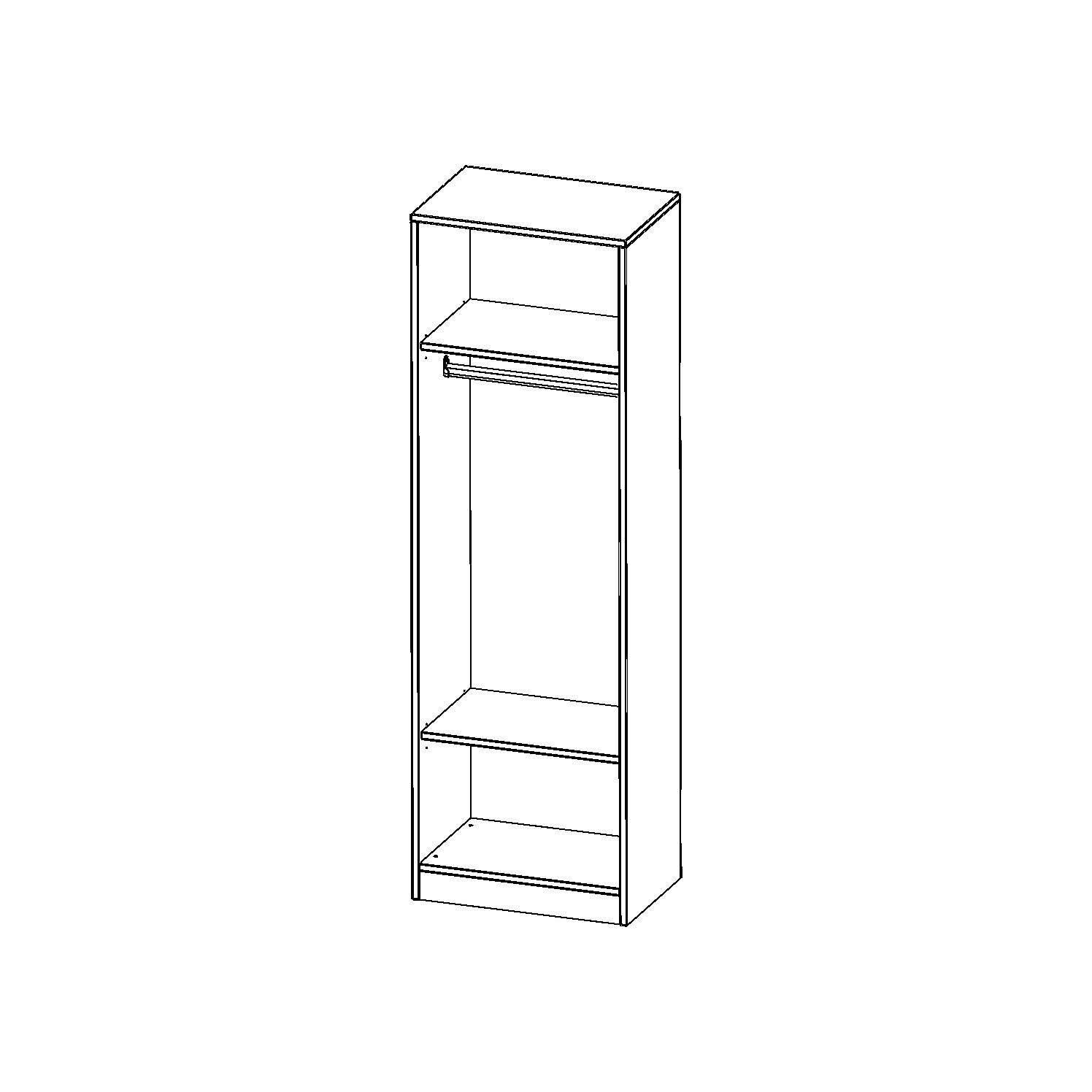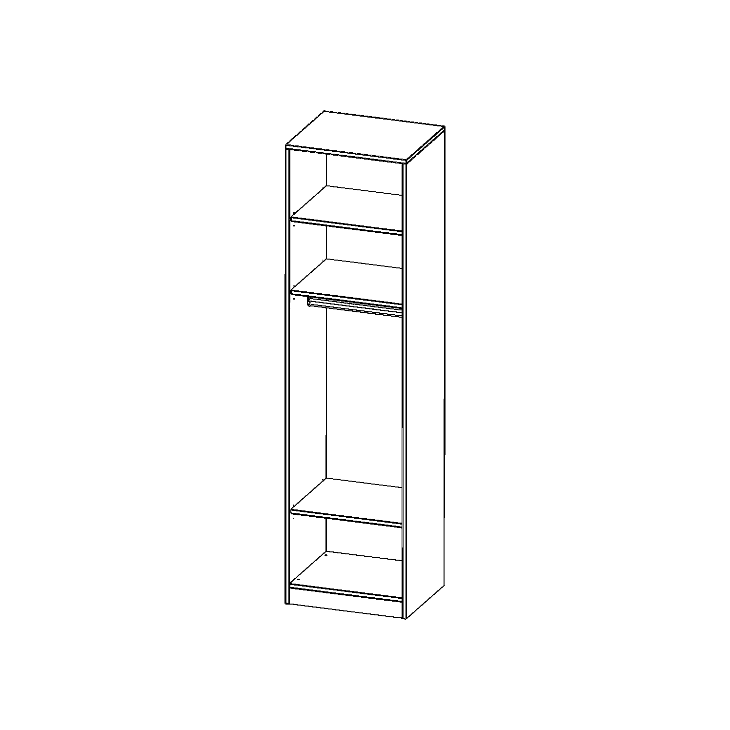 Im Regal befinden sich 2 Einlegeböden (Hut- und Schuhablage) sowie eine Kleiderstange.