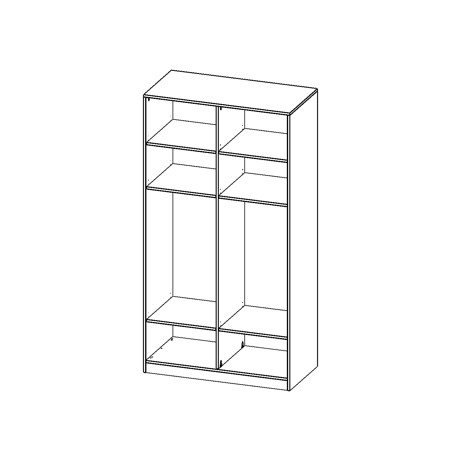 Auf der Innenseite einer der Türen befindet sich ein flächig aufgeklebter Spiegel (splitterbindende Folie). Weiterhin befinden sich im Regal 2 Einlegeböden (Hut- und Schuhablage) sowie eine Kleiderstange.
