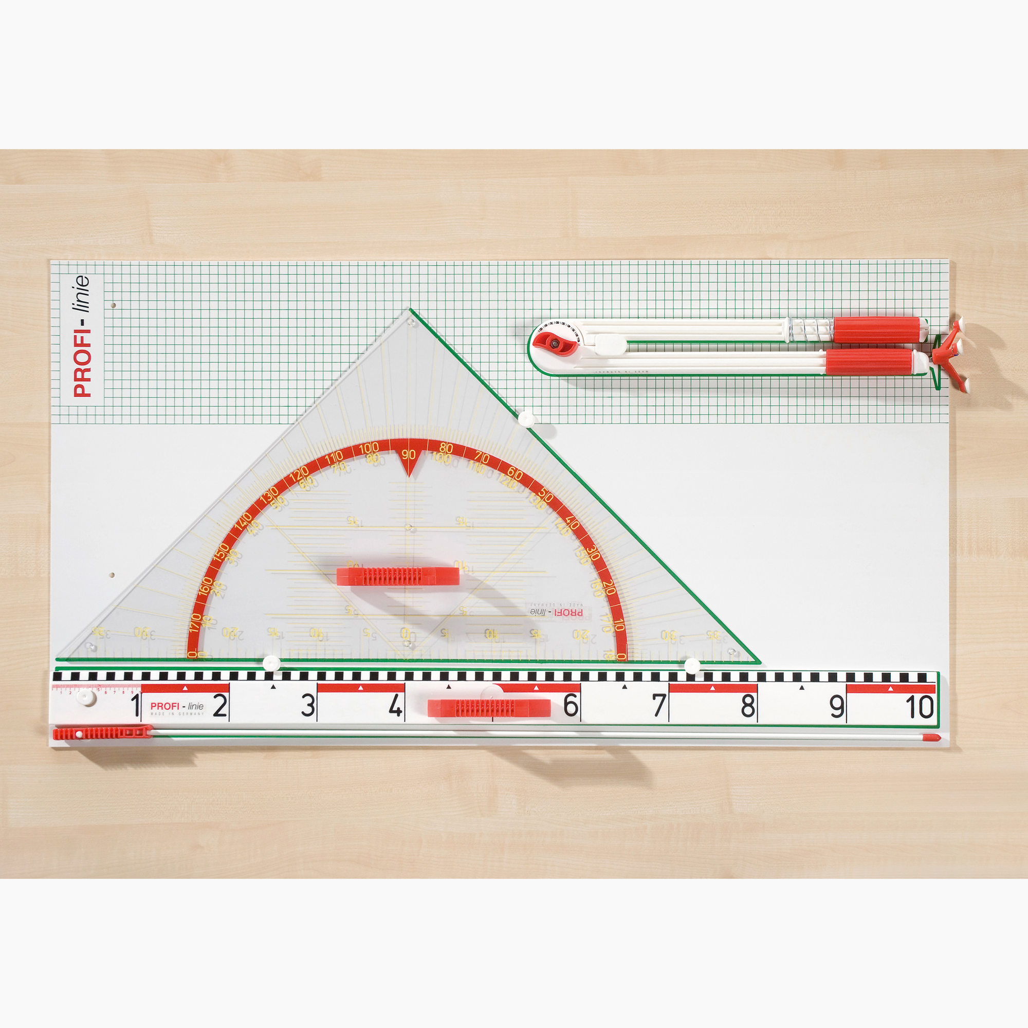 bestehend aus: Zirkel (mit Saugfuß) Lineal Geo-Dreick 80cm Fiberglas Zeigestock inkl. Montagematerial Zirkel, Lineal und Geodreieck magnetisch