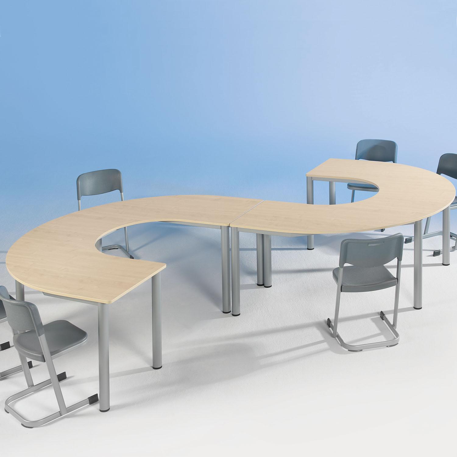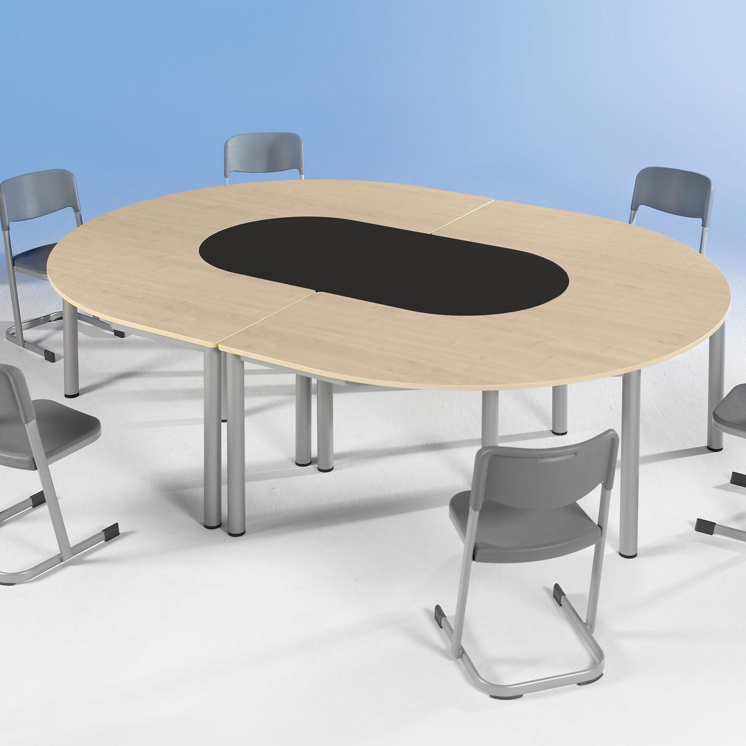 Unser Hufeisentischsystem "Lipizzaner" besteht aus 3 Grundformen, die Sie beliebig miteinander kombinieren können. Das Hufeisen, das Oval, und das halbe Oval können beliebig miteinander kombiniert werden. Das Gestell ist fest verschweißt, Beine aus 60 mm Rundrohr, pulverbeschichtet.