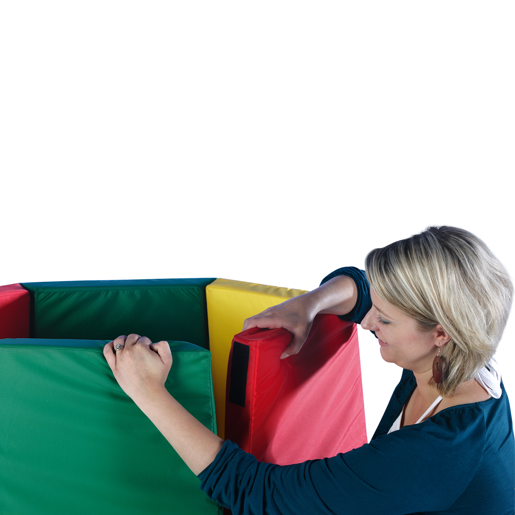 Das Zelt strahlt in den leuchtenden Farben Rot, Gelb und Grün und lädt Kinder jeden Alters dazu ein, ihrer Fantasie freien Lauf zu lassen. Ein Element ist mit einem Eingang versehen, der das Eintreten in die magische Welt des Spiels noch spannender macht.