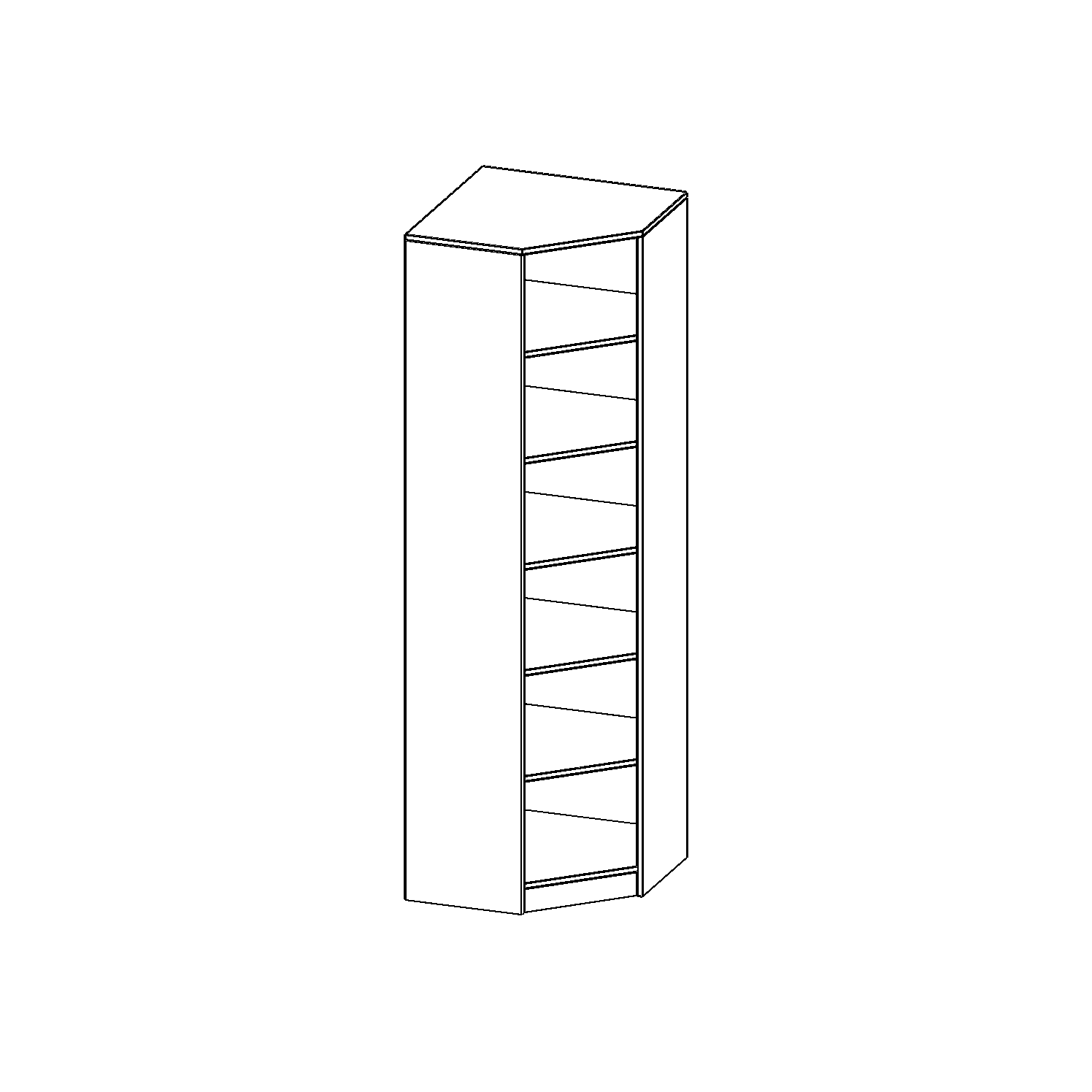 Die evo180 Inneneckregale verschiedenen Höhen und Tiefen sind ein ganz besonderer Bestandteil unseres evo180 Schrankwandprogrammes. Sie helfen dabei, Ihnen eine Schrankwand im wahrsten Sinne des Wortes "um die Ecke zu bringen". Die Innenecken führen die Schrankwand um die Raumecke herum. Die Rückwand ist als Sichtrückwand ausgeführt.