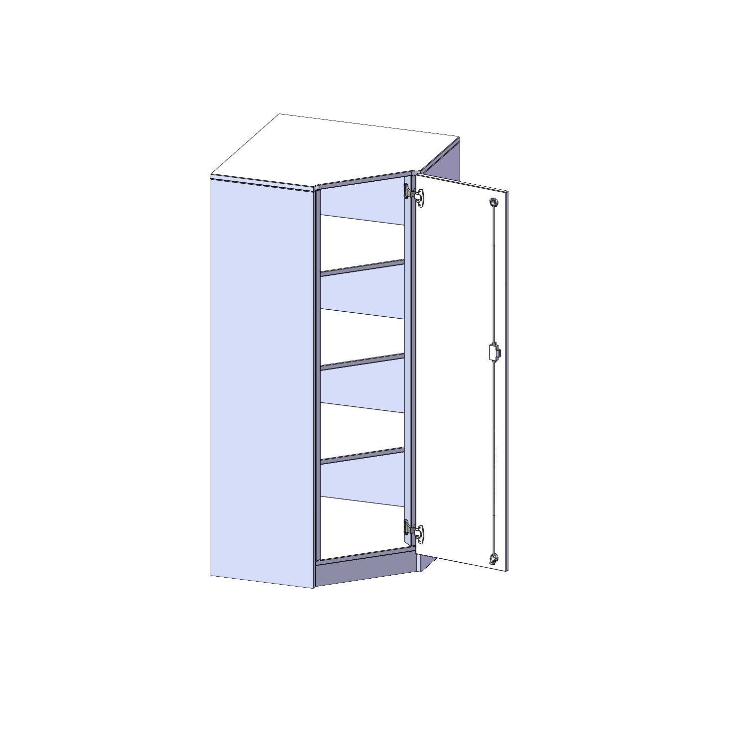 Alle Innenneckschränke werden aus melaminharzbeschichteter E1-Feinspanplatte gefertigt, die FSC zertifiziert und formaldehydfrei sind. Als Kanten verwenden wir besonders robuste 2 mm starke ABS Kanten, die unter hoher Temperatur fest verleimt werden. Bitte wählen Sie Ihr Wunschdekor aus unserer Dekorpalette aus. Die Einlegeböden sind im Raster von 32 mm verstellbar. Unsere hochwertigen Bodenträger verfügen über einen "Ausziehstop", so wird verhindert, dass Böden mit Inhalt darauf aus dem Regal oder Schrank rutschen können.