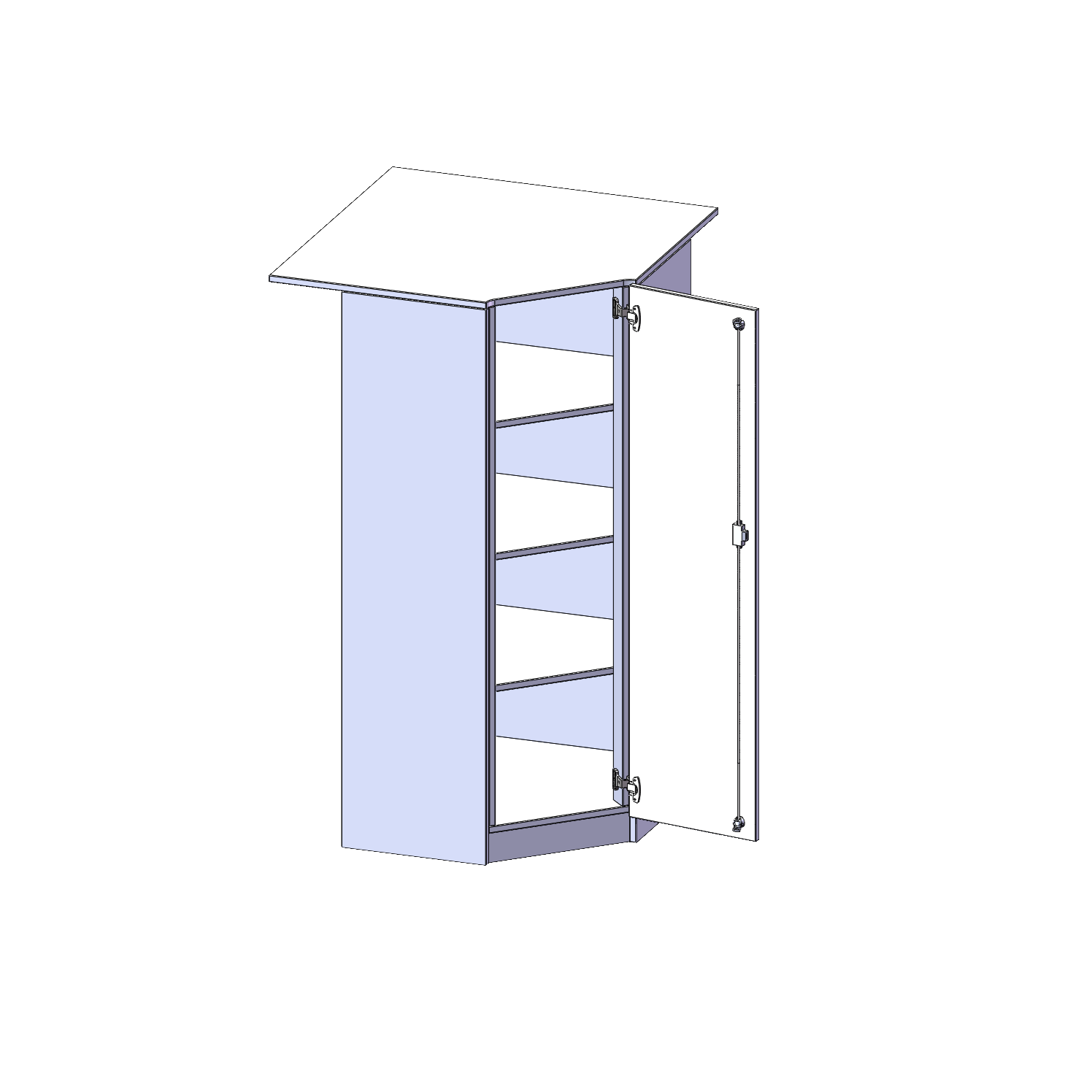 Alle Innenneckschränke werden aus melaminharzbeschichteter E1-Feinspanplatte gefertigt, die FSC zertifiziert und formaldehydfrei sind. Als Kanten verwenden wir besonders robuste 2 mm starke ABS Kanten, die unter hoher Temperatur fest verleimt werden. Bitte wählen Sie Ihr Wunschdekor aus unserer Dekorpalette aus. Die Einlegeböden sind im Raster von 32 mm verstellbar. Unsere hochwertigen Bodenträger verfügen über einen "Ausziehstop", so wird verhindert, dass Böden mit Inhalt darauf aus dem Regal oder Schrank rutschen können.