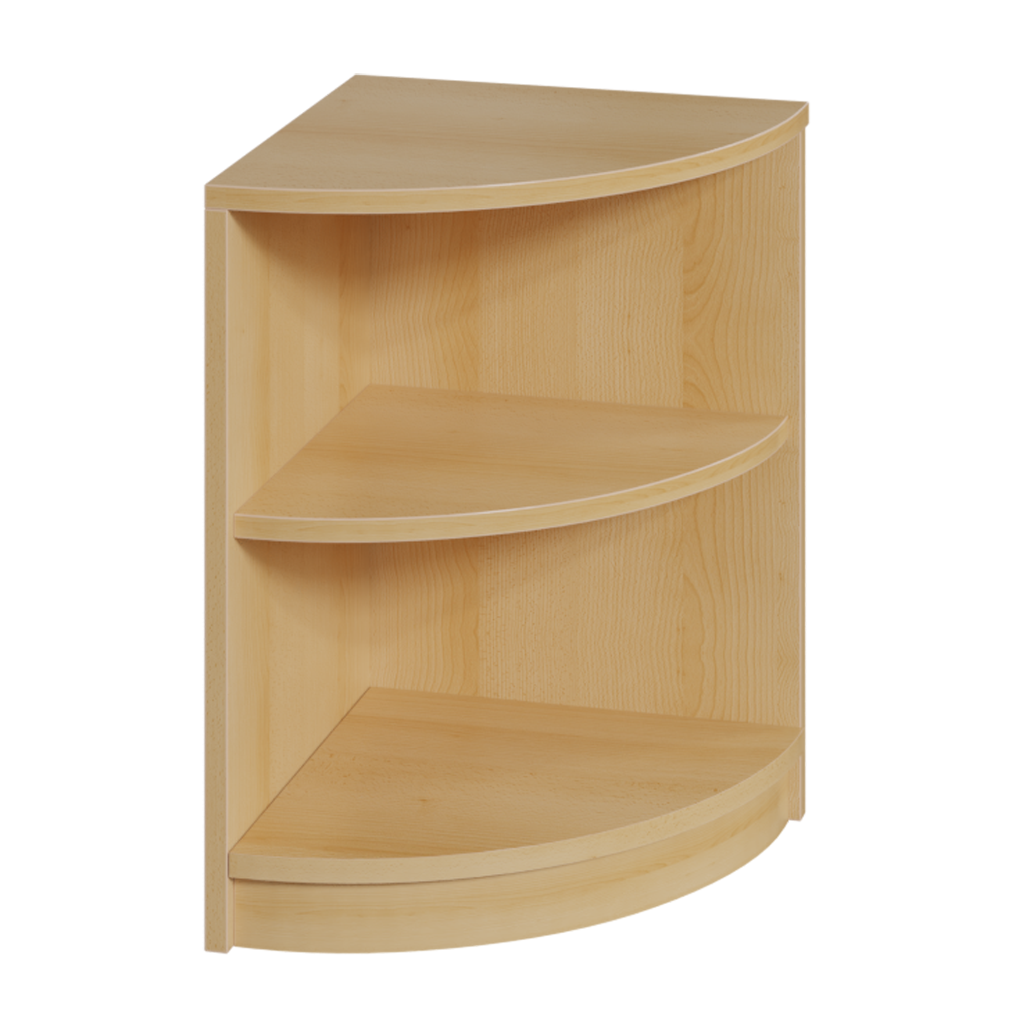 Das formschöne Viertelkreisregal ist die perfekte Ergänzung für Möbeleinrichtungen in Schulen, Kindergärten, Gruppenräumen oder Spielbereiche. Gefertigt aus melaminharzbeschichteter Feinspanplatte, überzeugt es durch eine pflegeleichte, strapazierfähige Oberfläche. Die feste Verleimung sorgt für höchste Stabilität – selbst im turbulenten Kita- oder Schul-Alltag. Die Kanten bestehen aus hochqualitativen 2 mm - ABS-Sicherheitskanten. Dank der Sichtrückwand kann es nicht nur an der Wand, sondern auch als Raumteiler genutzt werden. Für die Möblierung steht das Regal in 5 verschiedenen Höhen zur Verfügung, im Standard bzw. soweit die Bestellung nicht anders lautet, wird das Eckregal als eine rechte Anstellseite gefertigt.