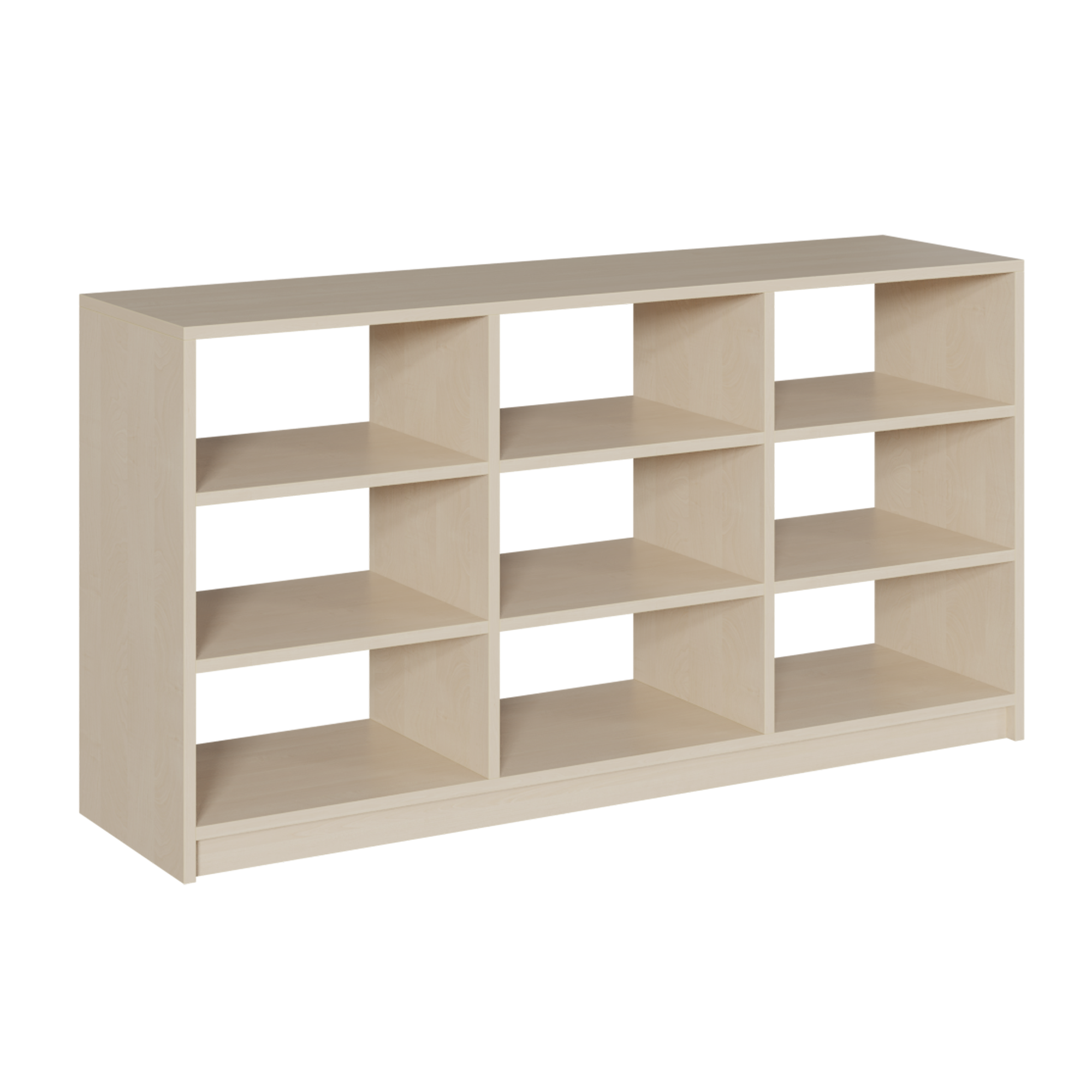 Dieses hochwertige Regal überzeugt durch seine robuste Verarbeitung und flexible Einsatzmöglichkeiten. Gefertigt aus melaminharzbeschichteter Feinspanplatte, bietet es je nach Höhe mit 6 bzw. 9 großzügigen Fächern reichlich Platz für Bücher, Deko, sowie Dies und Das. Flexible Fachböden, die gegen Herausziehen gesichert sind, können bei Bedarf auch entfernt werden und so Platz für Ordner geschaffen werden.