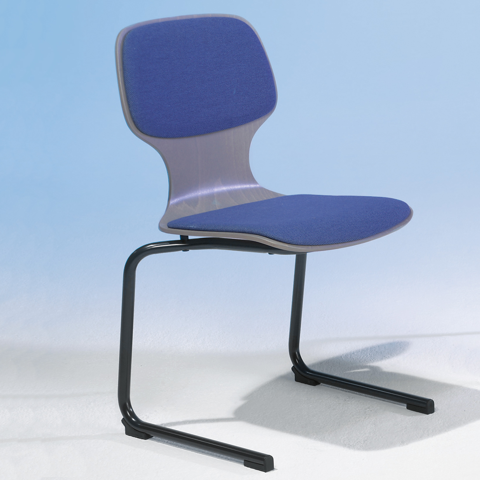 Unser Stuhl 8 mit Freischwinger- Rundrohrgestell und Sitz- und Rückenpolster kann optional mit gebeitzter Sitzschale ausgestattet werden.