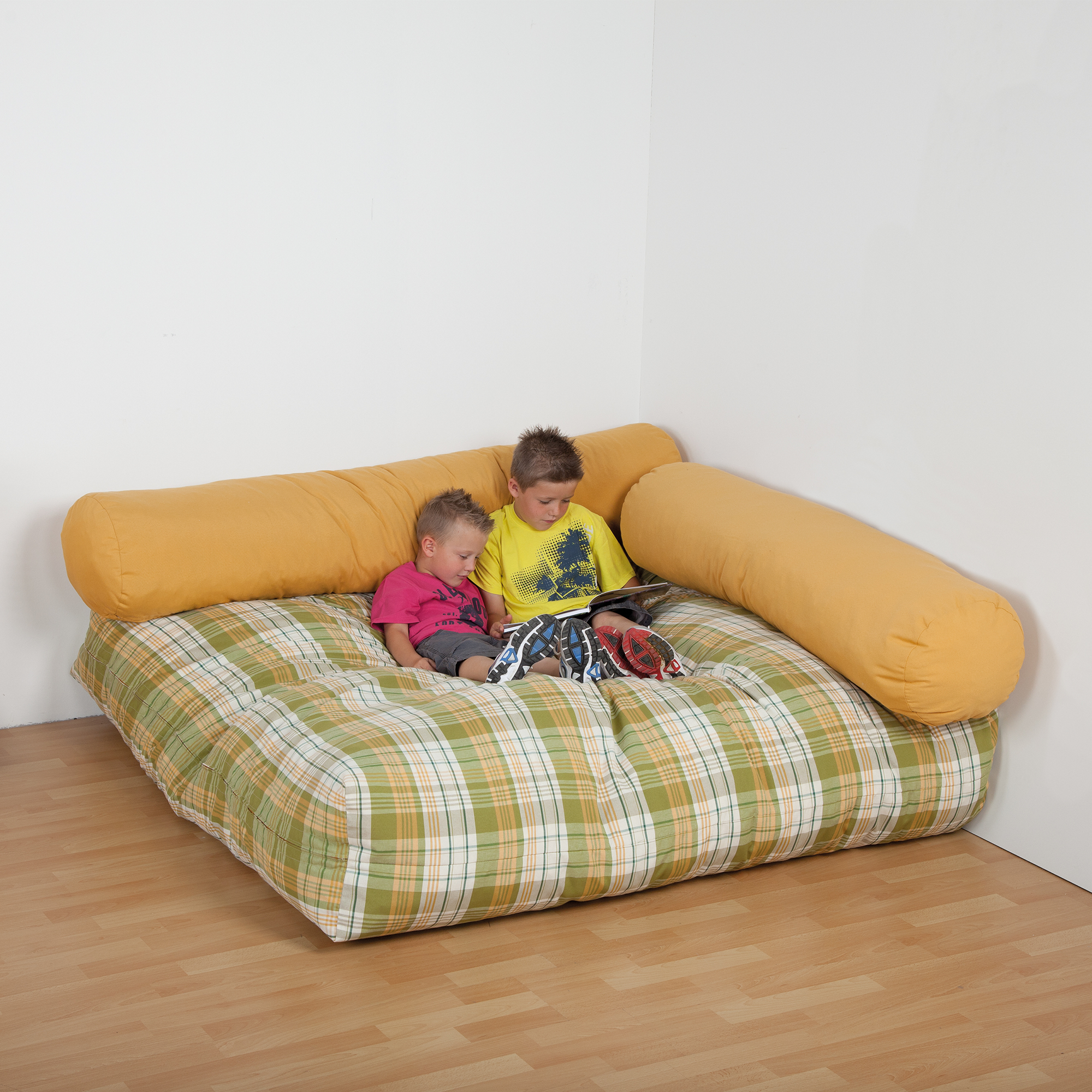 Die 3-teilige Kuschelecke mit Flockenfüllung besteht aus einem Kuschelecken Quadrat mit super softer Flockenfüllung und zwei Rückenrollen. Sie bietet großräumigen Platz für uneingeschränktes spielen, toben und entspannen.