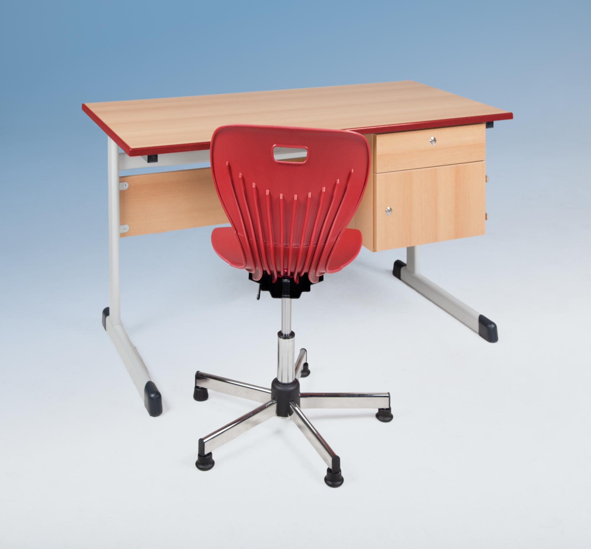Er ist mit einem Unterbau mit Fach und einem Schub ausgestattet, durch das Schloss sichert er Lehrmaterialien und persönliche Gegenstände ab, während sein modernes Design sich nahtlos in jedes Klassenzimmer einfügt.
