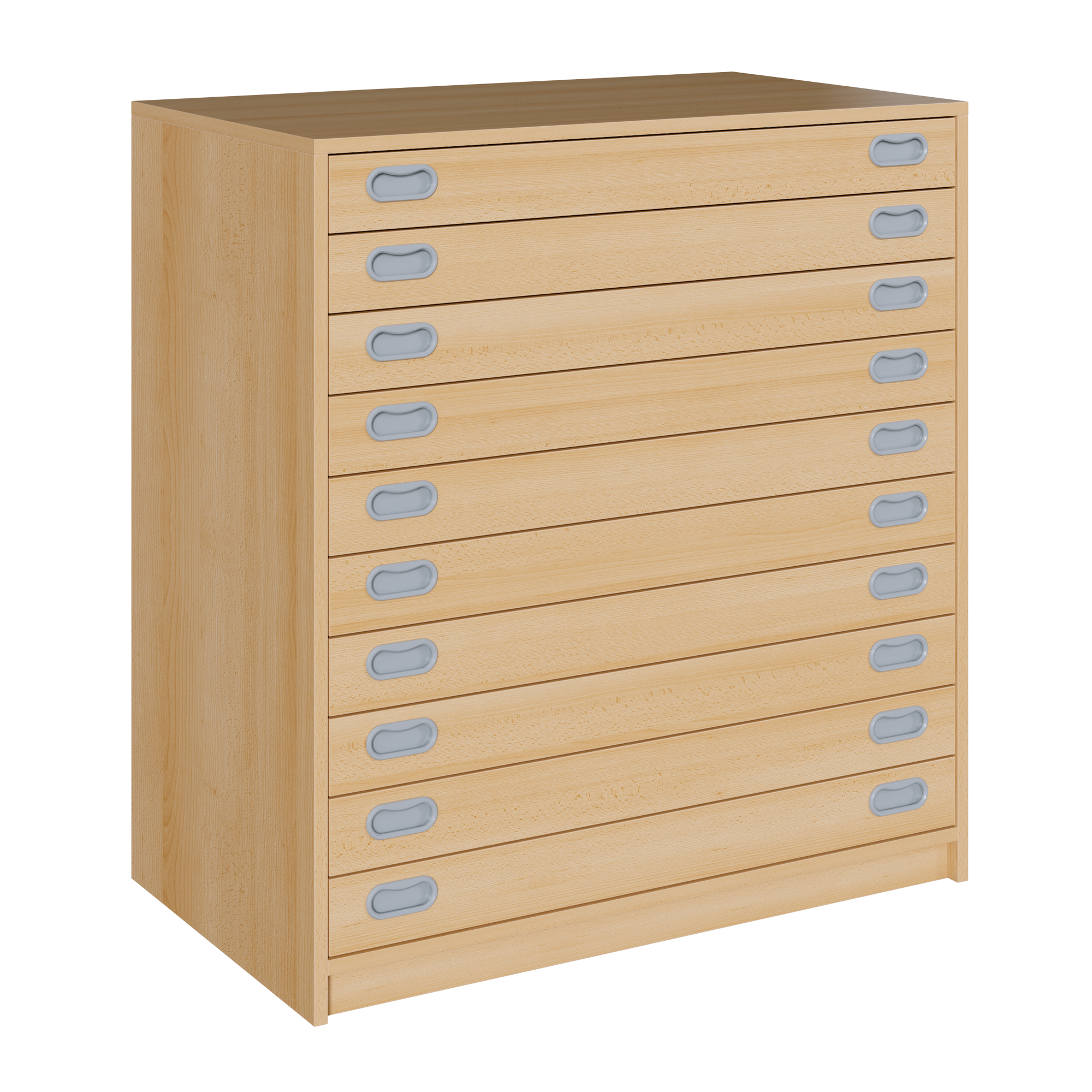 Der Papierschrank mit Schüben ist ein Raumwunder für großformatiges DIN A2 oder DIN A3 Format Papier. Überall dort, wo in Kindereinrichtungen kreativ gezeichnet und gebastelt wird und anschließend die kleinen Kunstwerke in sortierter Ordnung aufbewahrt werden wollen, ist dieser Schrank perfekt geeignet. Gefertigt aus hochwertiger Melaminspanplatte sind die Papierschränke nicht nur super stabil, sondern auch resistent gegen Kratzer und Flecken. Eine stabile Sichtrückwand bietet zusätzlich die Möglichkeit, dass die Papierschränke frei im Raum stehend genutzt werden können. Alle Schübe sind mit Griffmulden ausgestattet und auch von Kindern leicht zu bedienen. Es stehen verschiedene Dekor- und Farbkombinationen zur Auswahl. Ein rundum ideales Möbelstück für die tägliche Nutzung im Kindergarten, Hort oder Schule.