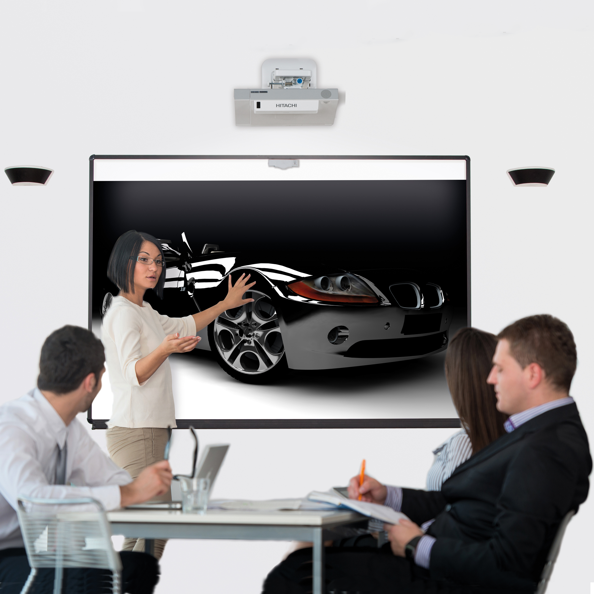 Unsere Projektionstafel für (fingerbedienbare interaktive) Ultranadistanzprojektoren zur Wandmontage. Mit matter Tafeloberfläche, Mittelfläche projektionsoptimiert, Aluminiumprofile schwarz, mit integrierter Ablageleiste über die Gesamtlänge der Projektionsfläche, magnethaftend und trocken abwischbar, mit Whiteboardmarkern beschreibbar, Wandabstand 2,5 cm hinter der Tafel zur Durchführung der Kabel.