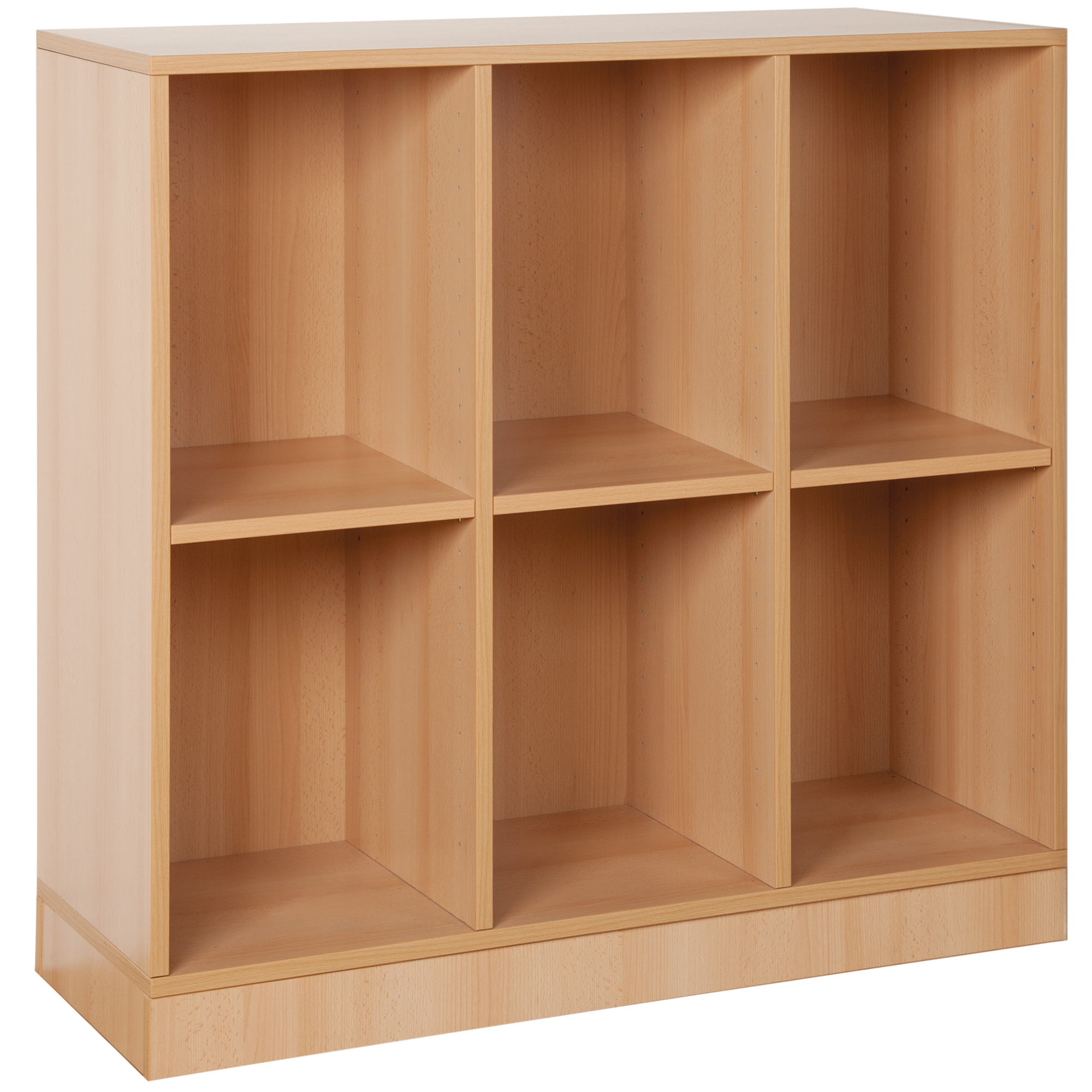 Das offene Regal bietet Stauraum für die Höhe von 2 Ordnern. Die 6 offenen Fächern sind mit 2 Mittelwänden getrennt. Durch 3 Einlegeböden lässt sich die Höhe der 6 Fächer im Raster von 32 mm beliebig variieren. Die Einlegeböden unserer Schränke sind mit einer Auszugsicherung versehen, die das ungewollte Herausziehen verhindert.