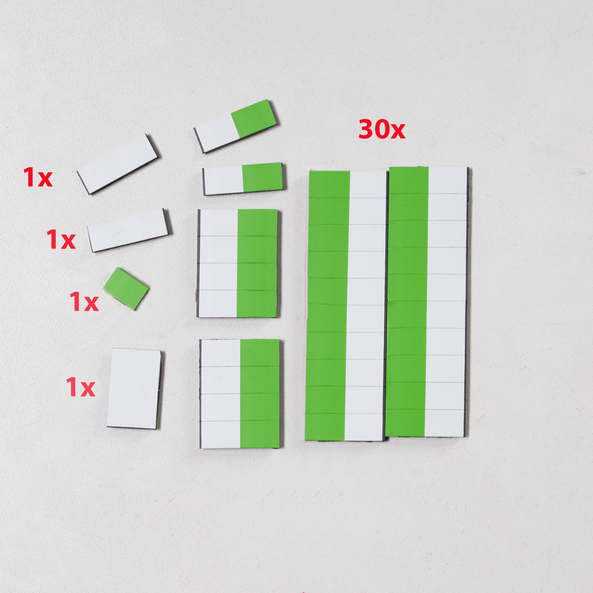 30x Kippmagnet (MS10x30), 10 x 30 mm, halb farbig/halb weiß