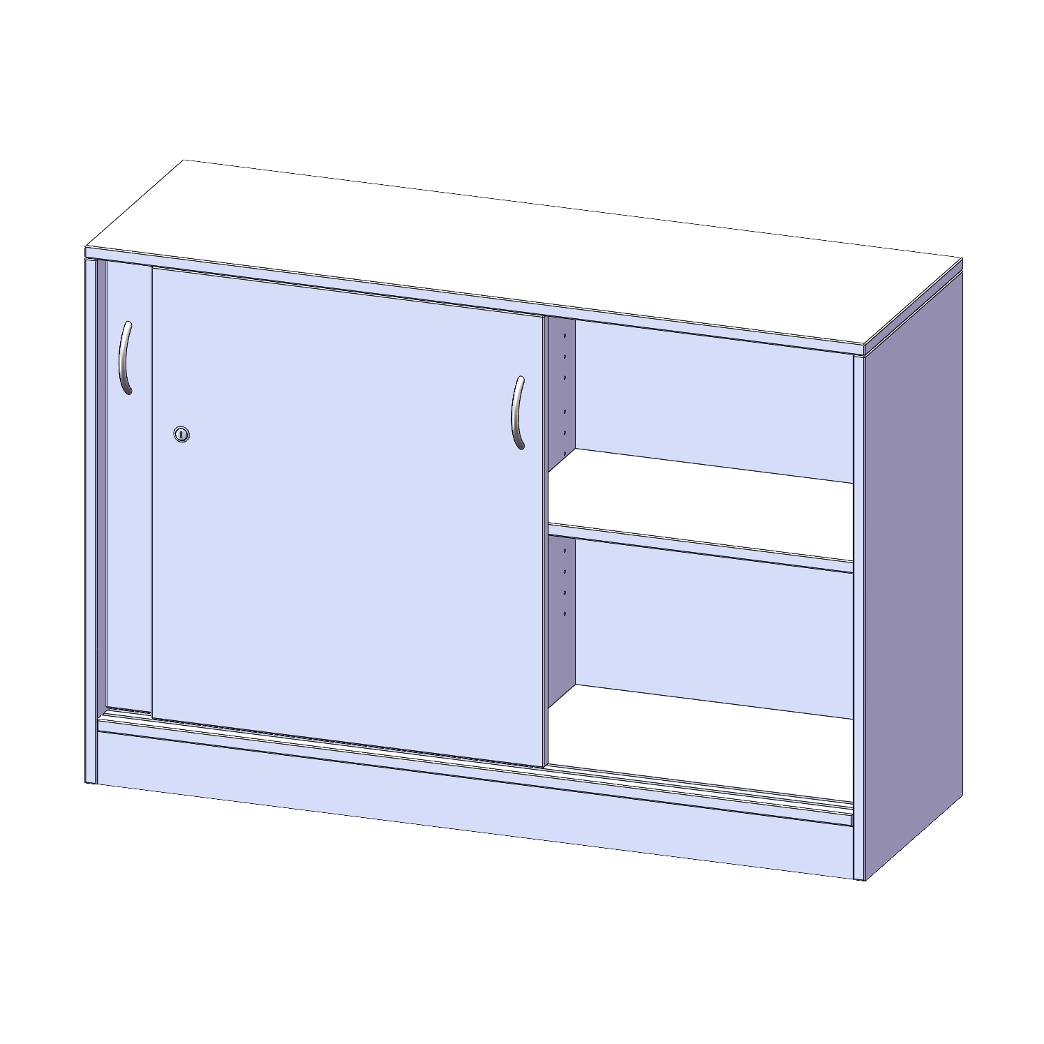 Schränke mit Schiebetüren sind die ideale Lösung, wenn aufschwingende Drehtüren zu ausladend wären - zum Beispiel wenn Ihre Schrankwand oder der einzelne Schrank in einem Durchgang hinter einem Arbeitsplatz steht. Die Türen sind mittels Druckzylinderschloss abschließbar, beide Türen sind mit einem Bügelgriff (Farbe: Alu) ausgestattet und lassen sich so leicht aufschieben. Die Türen laufen sehr leicht in eingenuteten Führungsschienen.