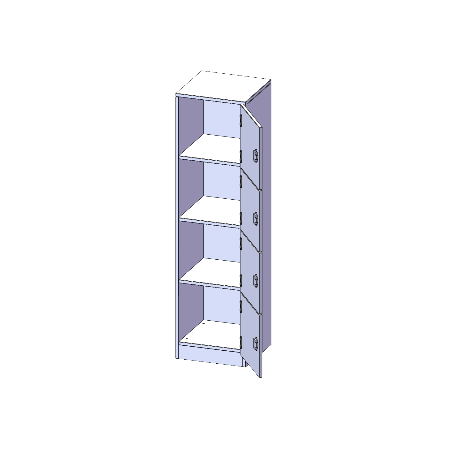 B/H/T: 40,5x154x40 cm, 4 Schließfächer, Türen öffnen nach rechts, mit Sockel (81 mm)