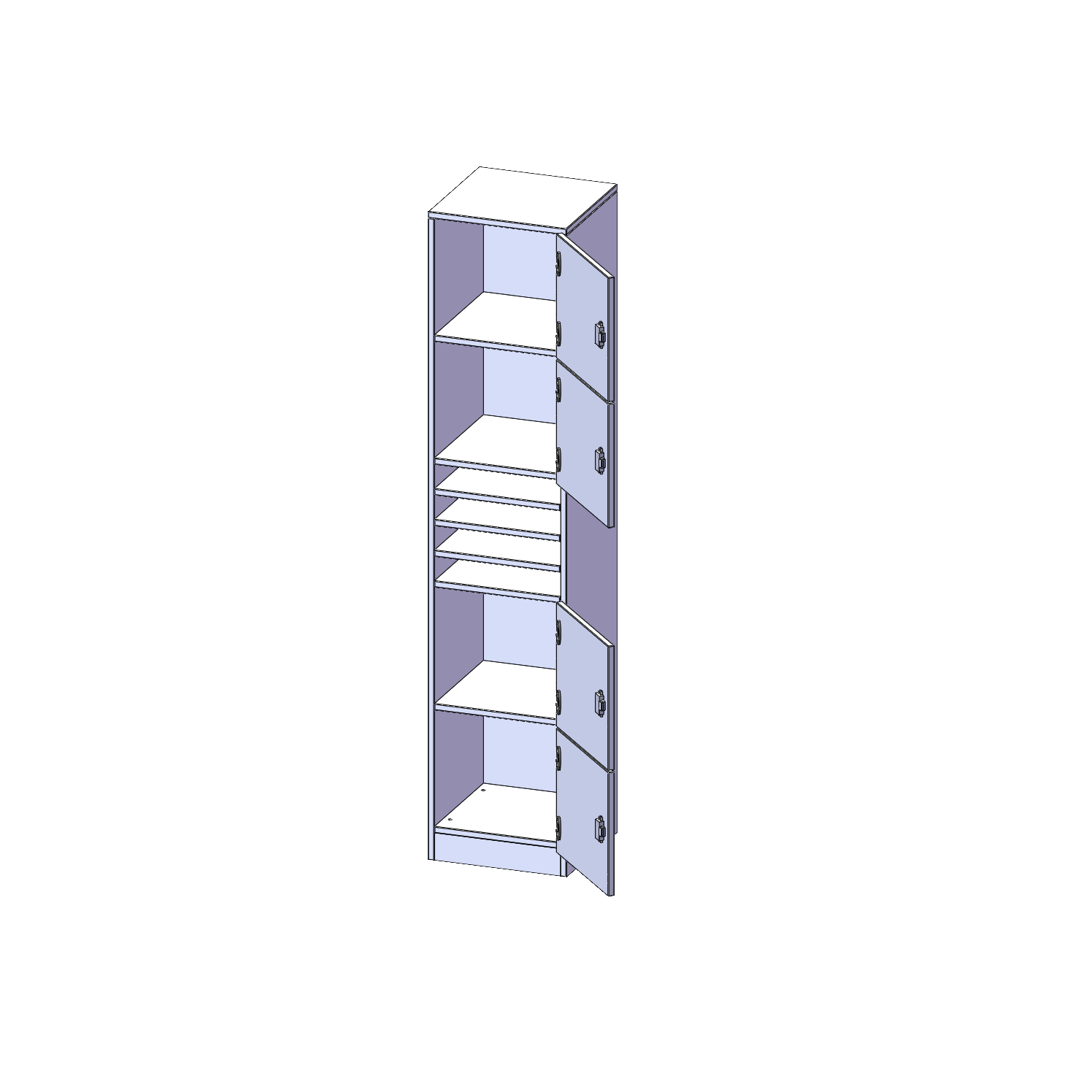 B/H/T: 40,5x190x40 cm, 4 Schließfächer, je 1 Kleinfach, Türen öffnen nach rechts, mit Sockel (81 mm)
