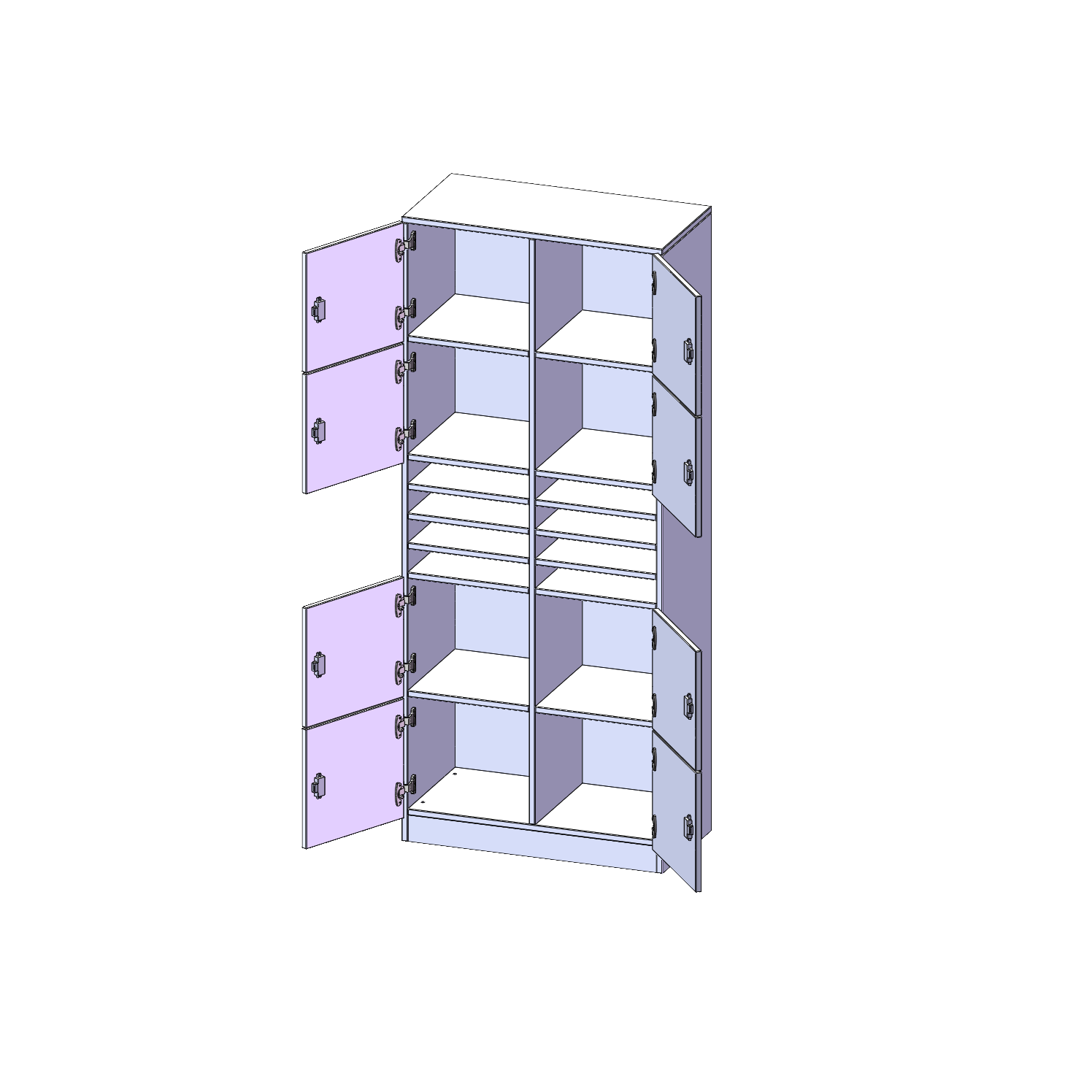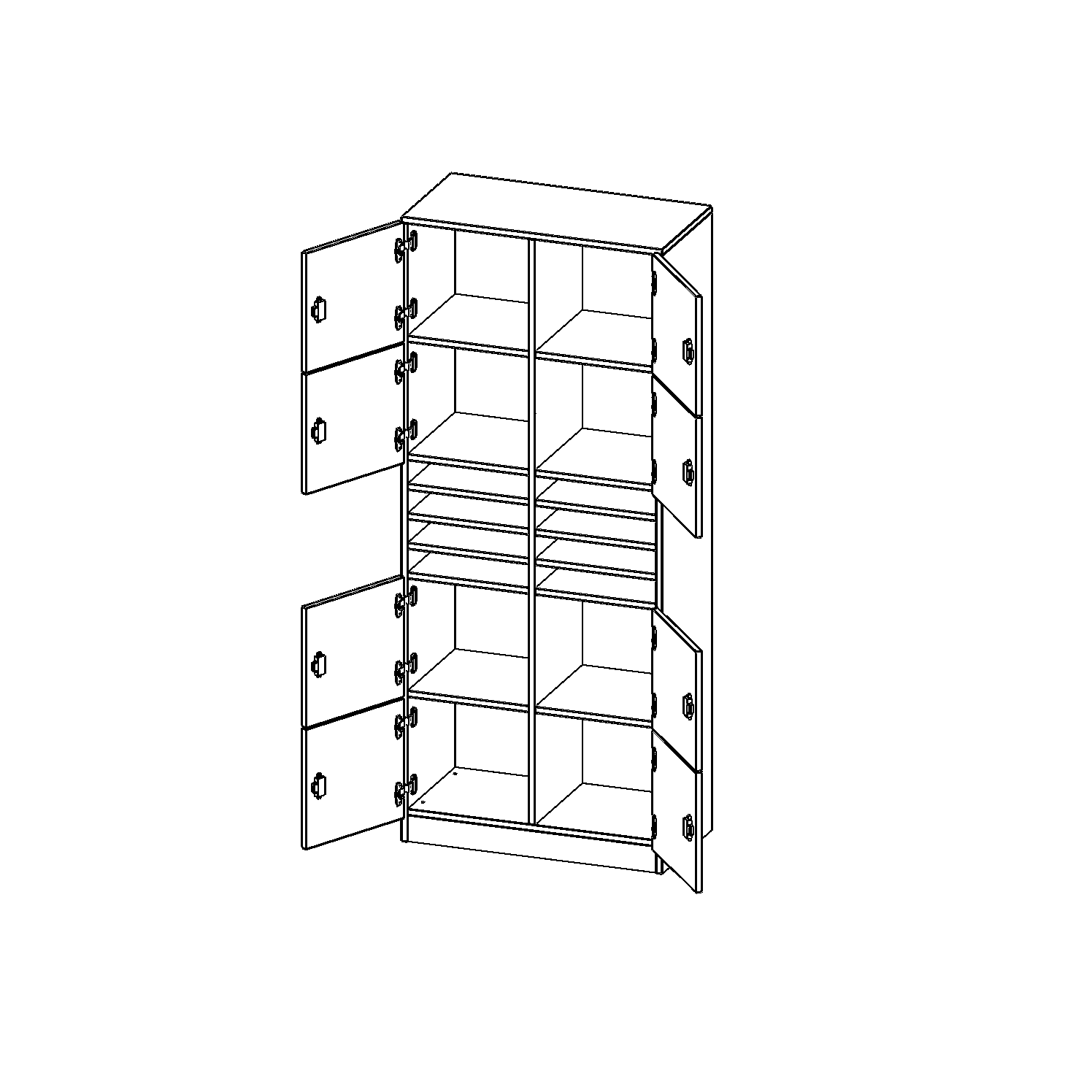 B/H/T: 80x190x40 cm, 8 Schließfächer, je 1 Kleinfach, mit Sockel (81 mm)