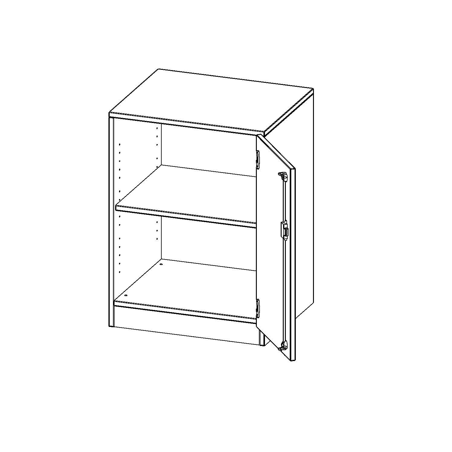 Alle Schränke werden aus melaminharzbeschichteter E1-Feinspanplatte gefertigt, die FSC zertifiziert und formaldehydfrei sind. Als Kanten verwenden wir besonders robuste 2 mm starke ABS Kanten, die unter hoher Temperatur fest verleimt werden. Bitte wählen Sie Ihr Wunschdekor aus unserer Dekorpalette aus. Die Einlegeböden sind im Raster von 32 mm verstellbar. Unsere hochwertigen Bodenträger verfügen über einen "Ausziehstop", so wird verhindert, dass Böden mit Inhalt darauf aus dem Regal oder Schrank rutschen können. Die Türen lassen sich dank 270° öffnender Scharniere an den Korpus anlegen. Sie sind mit einem Schloss verschließbar. An den Türen befindet sich eine Staublippe.