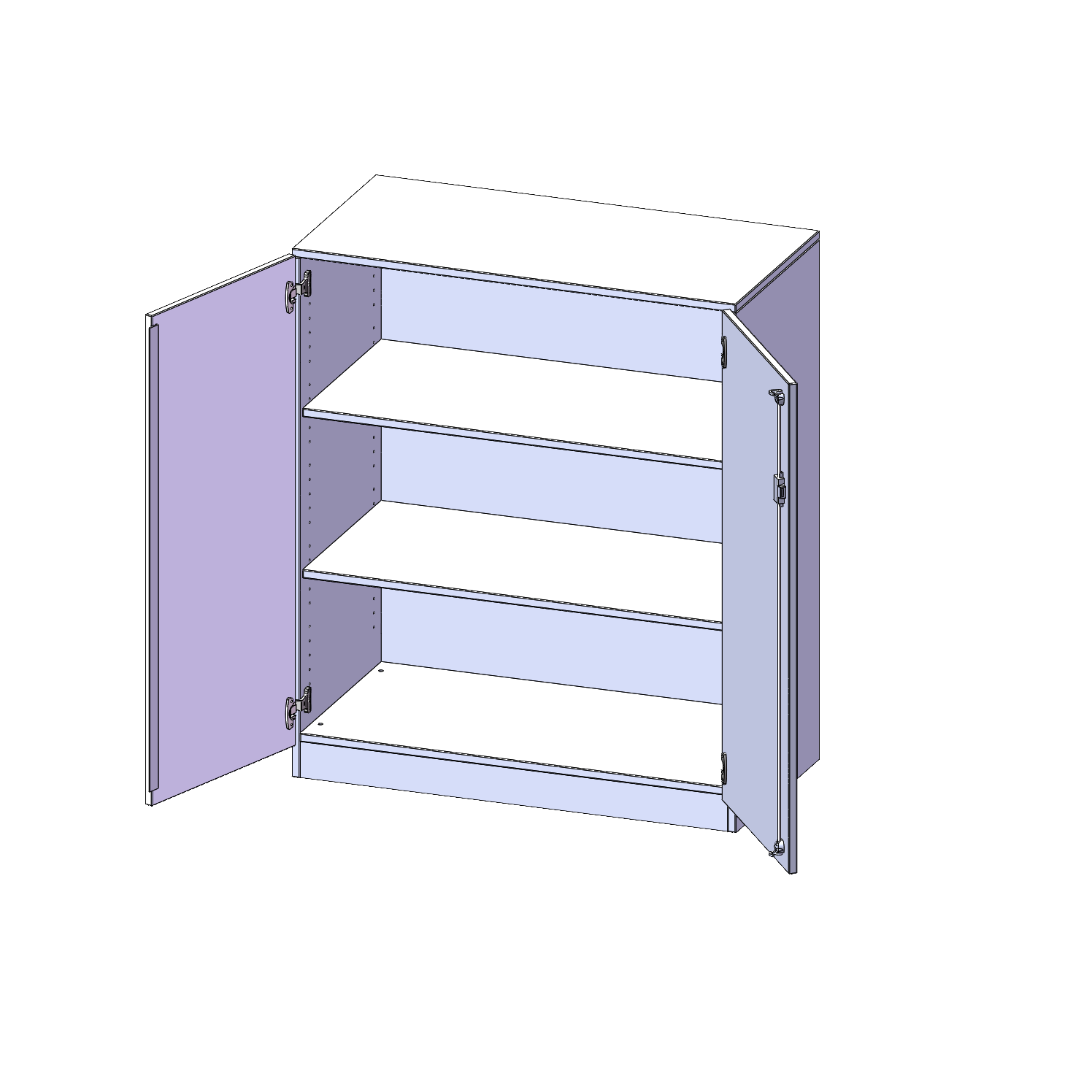 Alle Schränke werden aus melaminharzbeschichteter E1-Feinspanplatte gefertigt, die FSC zertifiziert und formaldehydfrei sind. Als Kanten verwenden wir besonders robuste 2 mm starke ABS Kanten, die unter hoher Temperatur fest verleimt werden. Bitte wählen Sie Ihr Wunschdekor aus unserer Dekorpalette aus. Die Einlegeböden sind im Raster von 32 mm verstellbar. Unsere hochwertigen Bodenträger verfügen über einen "Ausziehstop", so wird verhindert, dass Böden mit Inhalt darauf aus dem Regal oder Schrank rutschen können. Die Türen lassen sich dank 270° öffnender Scharniere an den Korpus anlegen. Sie sind mit einem Schloss verschließbar. An den Türen befindet sich eine Staublippe.