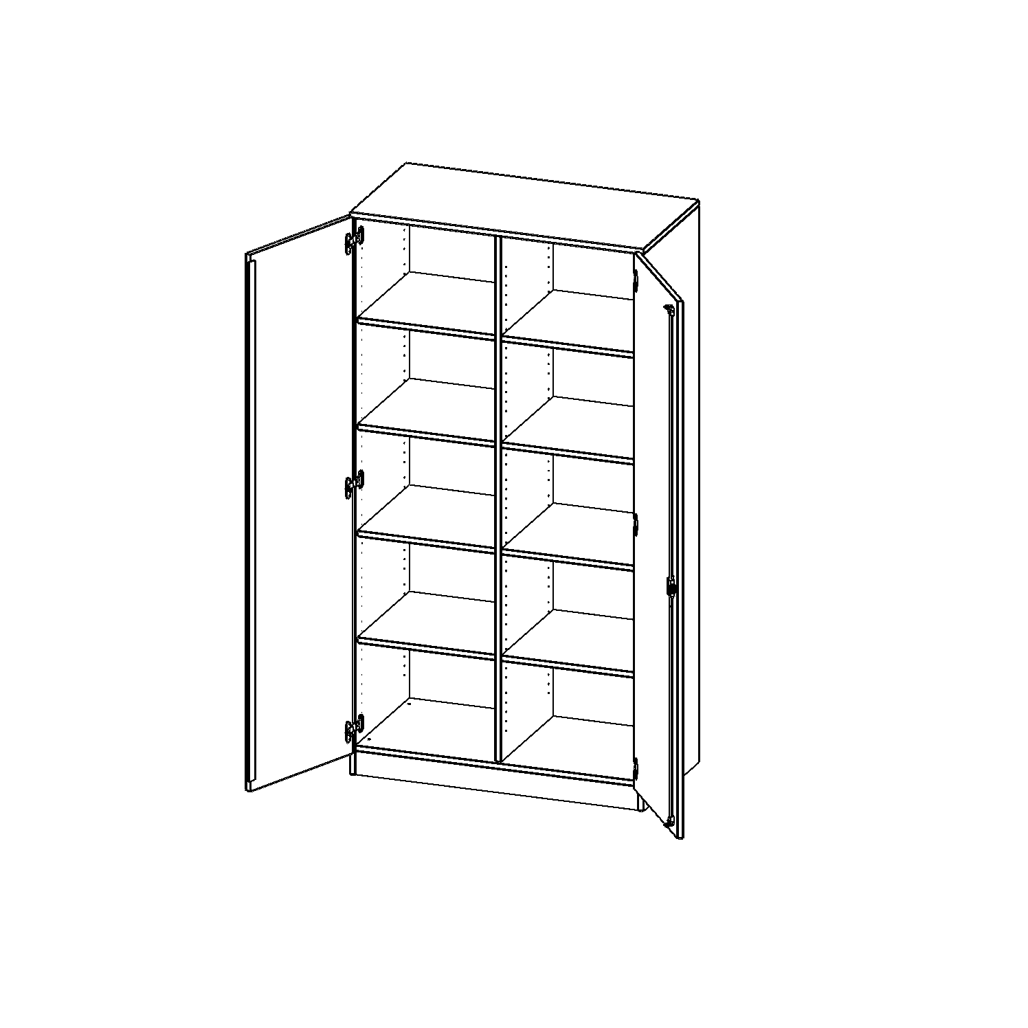 Alle Schränke werden aus melaminharzbeschichteter E1-Feinspanplatte gefertigt, die FSC zertifiziert und formaldehydfrei sind. Als Kanten verwenden wir besonders robuste 2 mm starke ABS Kanten, die unter hoher Temperatur fest verleimt werden. Bitte wählen Sie Ihr Wunschdekor aus unserer Dekorpalette aus. Die Einlegeböden sind im Raster von 32 mm verstellbar. Unsere hochwertigen Bodenträger verfügen über einen "Ausziehstop", so wird verhindert, dass Böden mit Inhalt darauf aus dem Regal oder Schrank rutschen können. Die Türen lassen sich dank 270° öffnender Scharniere an den Korpus anlegen. Sie sind mit einem Schloss verschließbar. An den Türen befindet sich eine Staublippe.