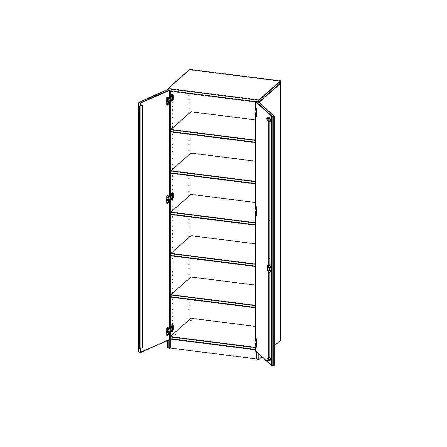 Alle Schränke werden aus melaminharzbeschichteter E1-Feinspanplatte gefertigt, die FSC zertifiziert und formaldehydfrei sind. Als Kanten verwenden wir besonders robuste 2 mm starke ABS Kanten, die unter hoher Temperatur fest verleimt werden. Bitte wählen Sie Ihr Wunschdekor aus unserer Dekorpalette aus. Die Einlegeböden sind im Raster von 32 mm verstellbar. Unsere hochwertigen Bodenträger verfügen über einen "Ausziehstop", so wird verhindert, dass Böden mit Inhalt darauf aus dem Regal oder Schrank rutschen können. Die Türen lassen sich dank 270° öffnender Scharniere an den Korpus anlegen. Sie sind mit einem Schloss verschließbar. An den Türen befindet sich eine Staublippe.
