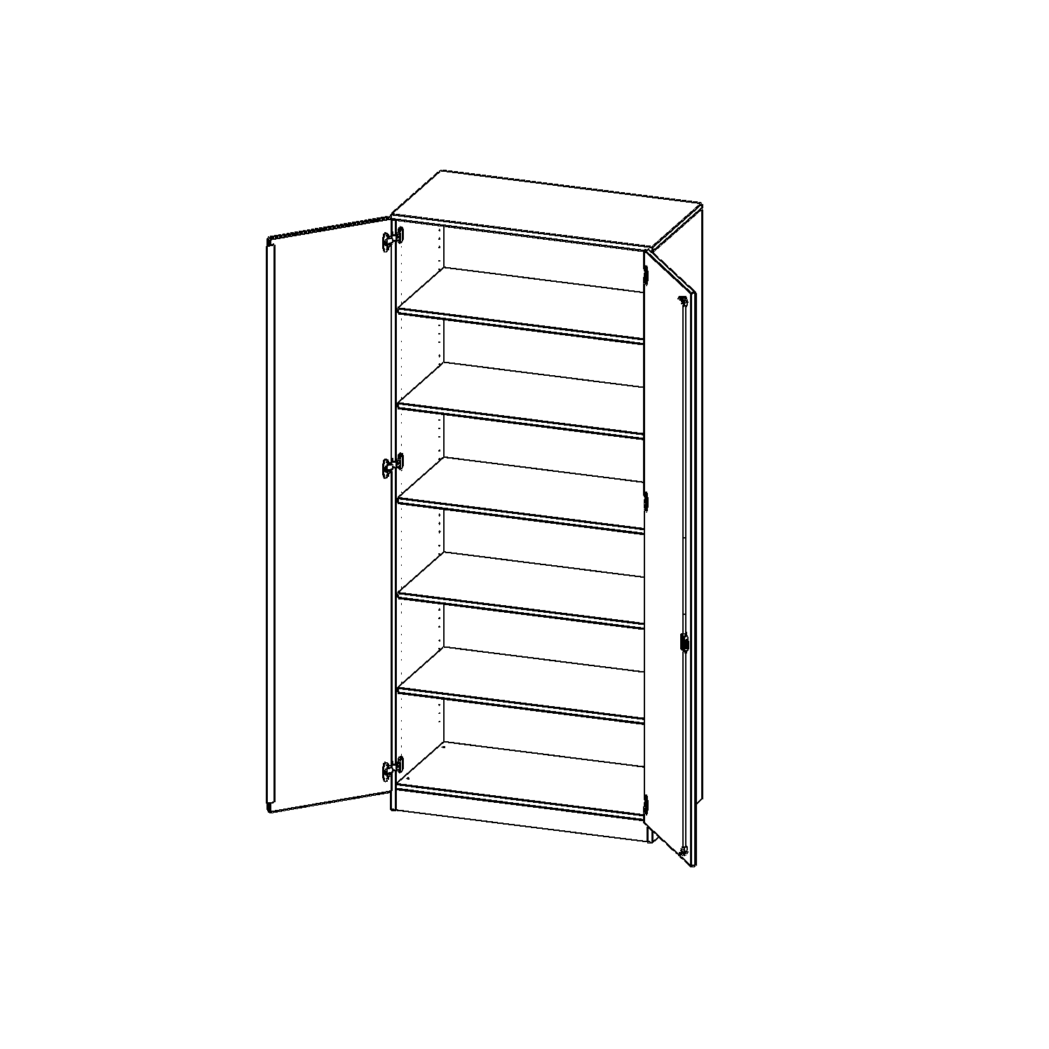 Alle Schränke werden aus melaminharzbeschichteter E1-Feinspanplatte gefertigt, die FSC zertifiziert und formaldehydfrei sind. Als Kanten verwenden wir besonders robuste 2 mm starke ABS Kanten, die unter hoher Temperatur fest verleimt werden. Bitte wählen Sie Ihr Wunschdekor aus unserer Dekorpalette aus. Die Einlegeböden sind im Raster von 32 mm verstellbar. Unsere hochwertigen Bodenträger verfügen über einen "Ausziehstop", so wird verhindert, dass Böden mit Inhalt darauf aus dem Regal oder Schrank rutschen können. Die Türen lassen sich dank 270° öffnender Scharniere an den Korpus anlegen. Sie sind mit einem Schloss verschließbar. An den Türen befindet sich eine Staublippe.