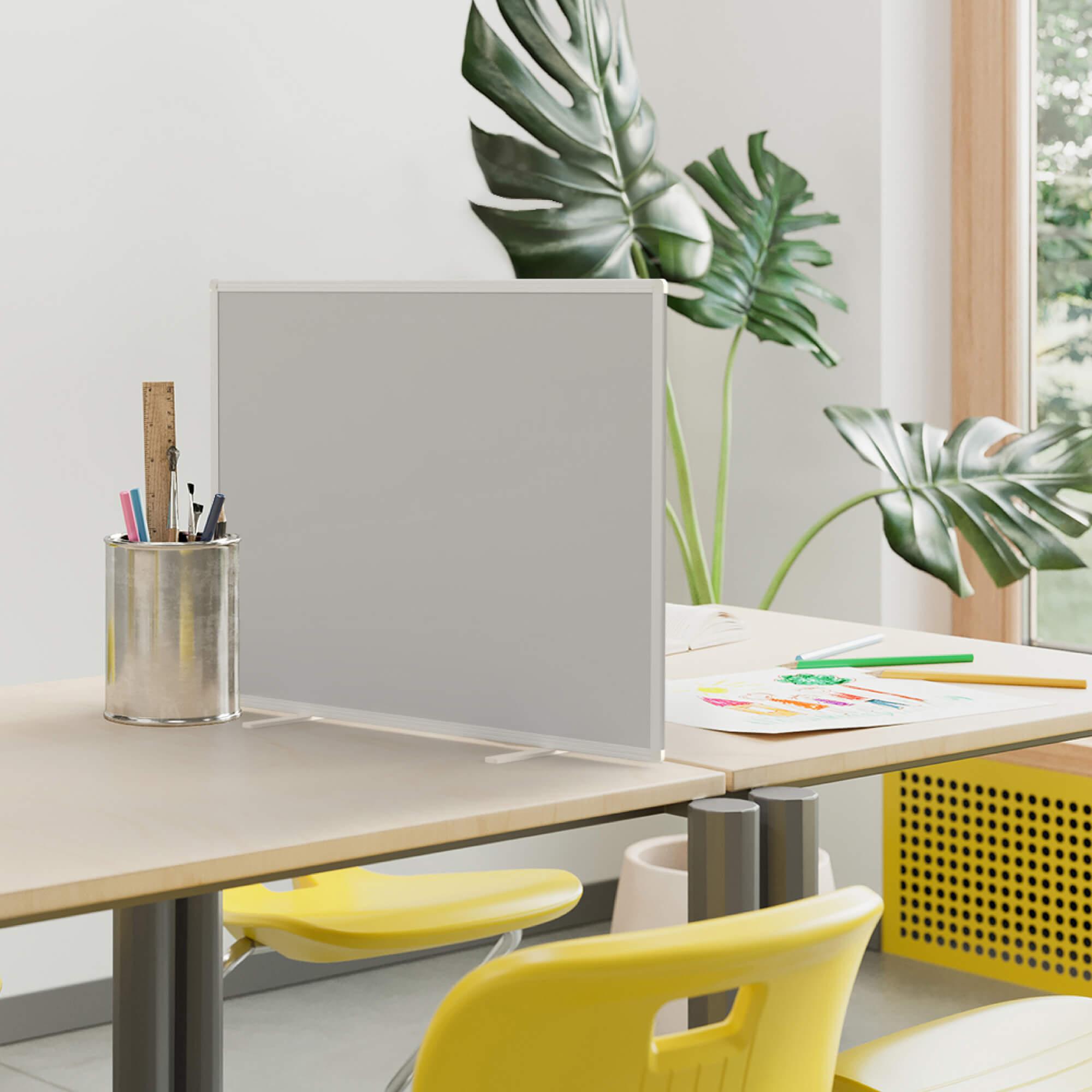 Dieser Sichtschutuz kann einfach auf dem Tisch positioneiert werden - fertig! Beliebig kombinierbar, kinderleicht auf- und abzubauen.