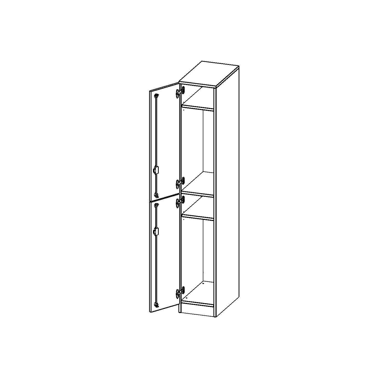 Gesamthöhe 190 cm, 2 Türen übereinander, Türen öffnen rechts oder links, mit Sockel (81 mm)