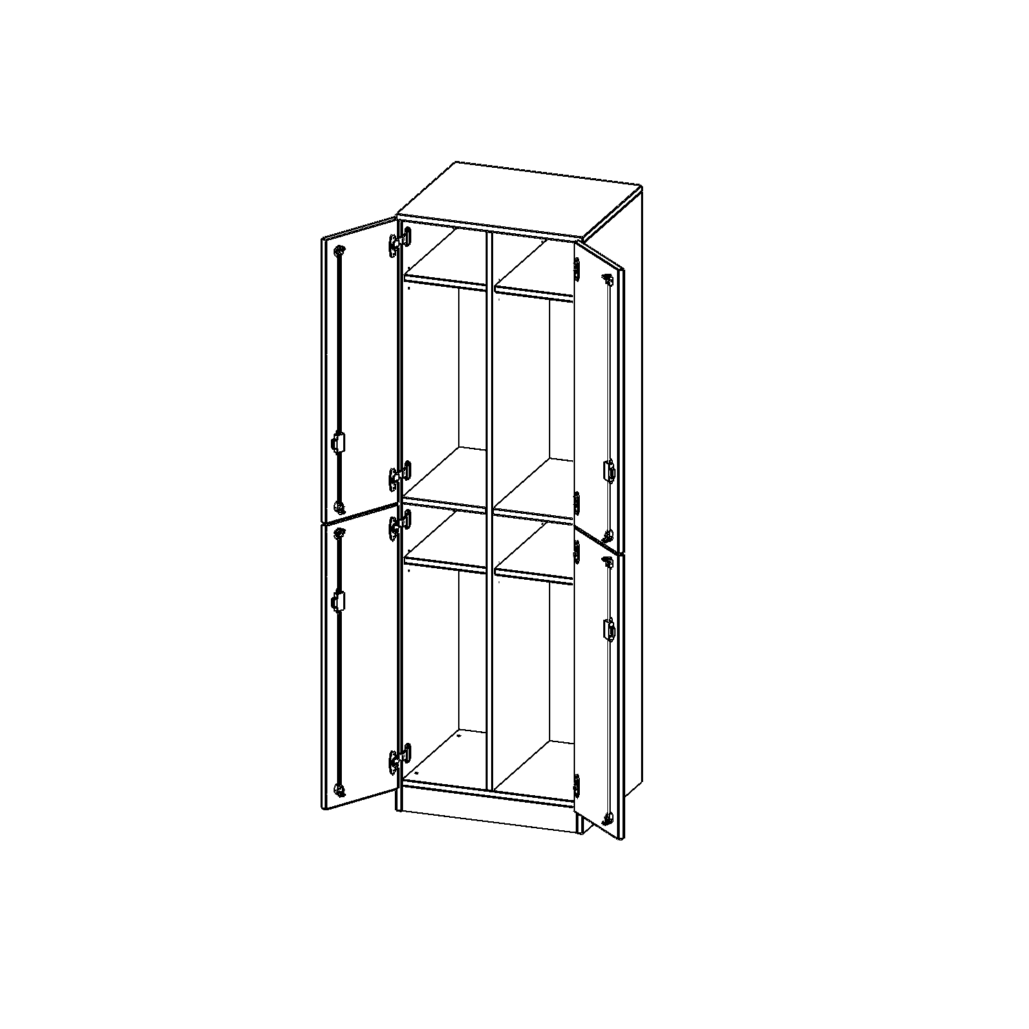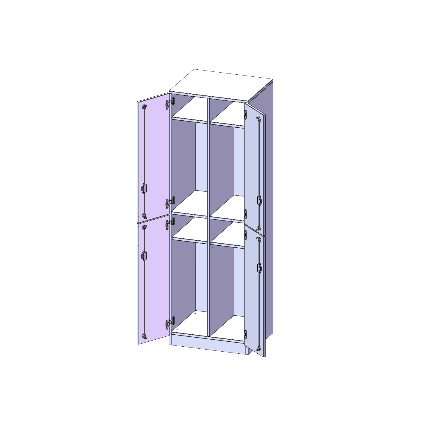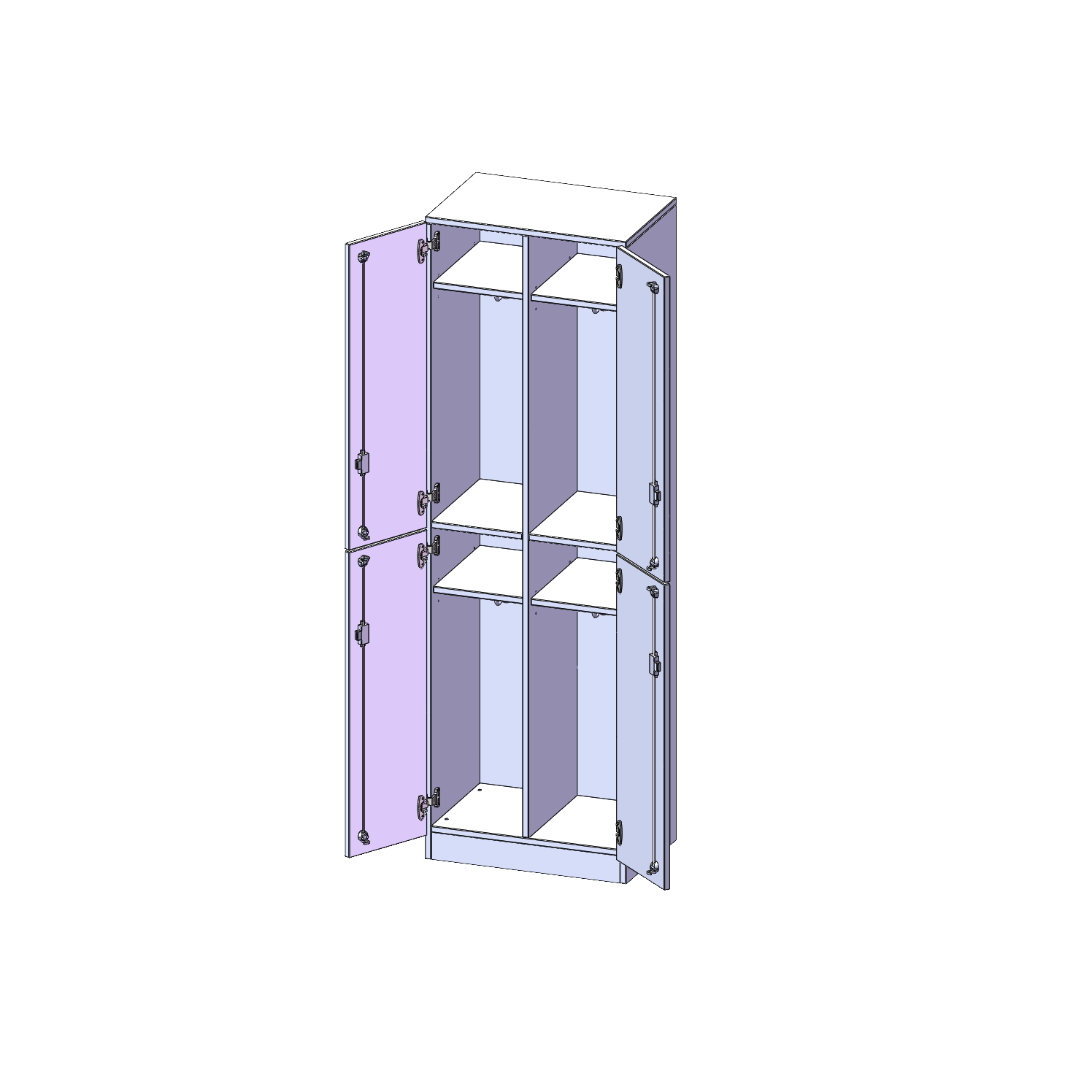 Im Inneren befinden sich eine Ablage für Mützen oder Hüte, Dreifachhaken. Ideal als Garderobeneinheiten für mehrere Schüler in Kombination mit anderen Spinden. Die Türen sind abschließbar und öffnen 270°. Je 2 Abteile übereinander.