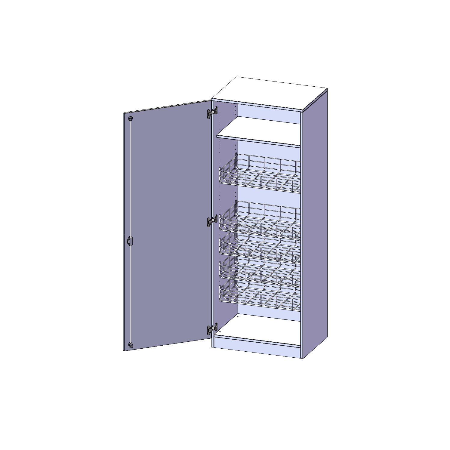 B/H/T: 70,3x190x60 cm, mit 4 Ballkörben, Halterungen an der Tür, Tür öffnet links, mit Sockel (81 mm)