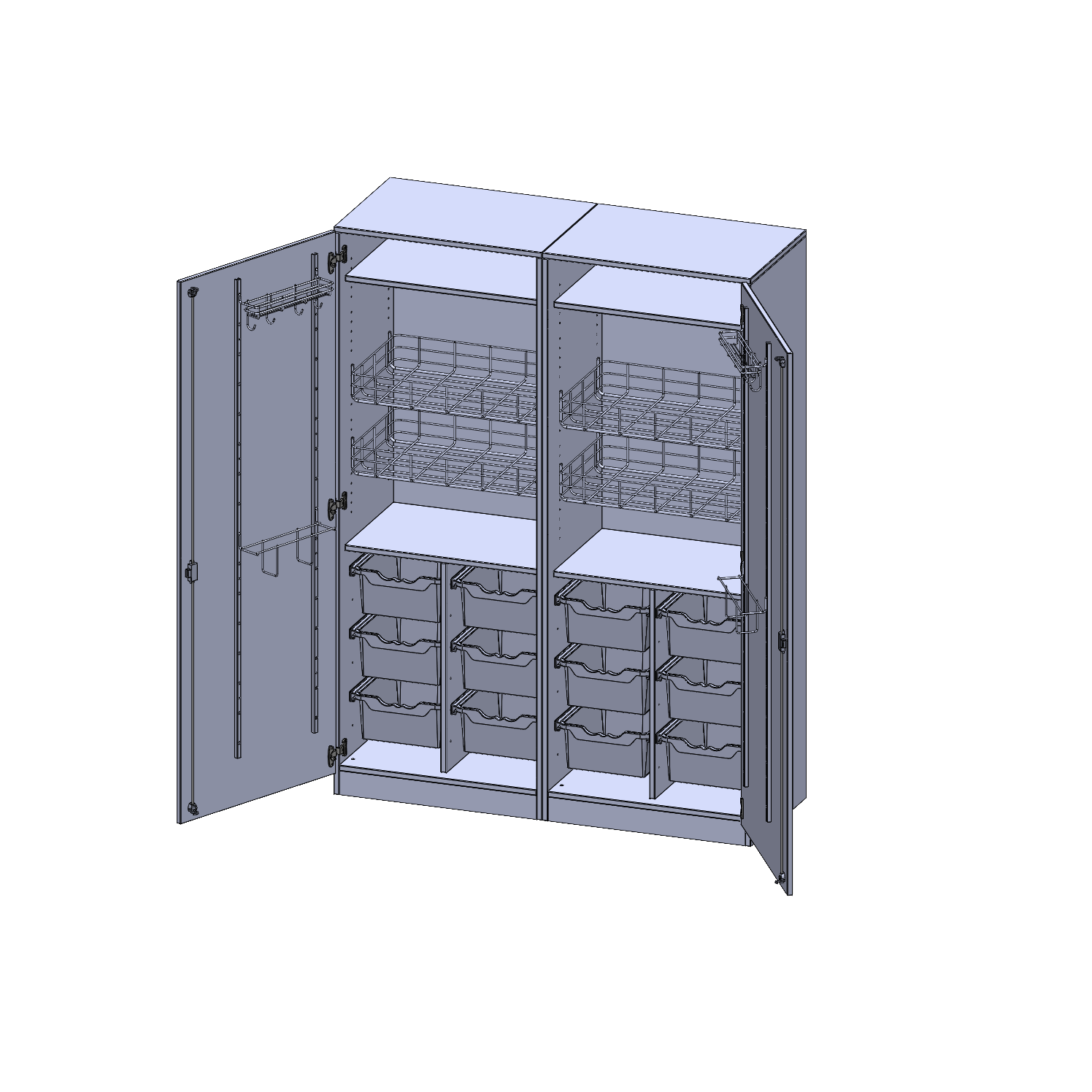 Die Sportschränke der evo180 Serie bieten ausreichend Platz für Bälle, Spielsachen und andere Utensilien für den Sportunterricht.. Die Türen sind wahlweise mit oder ohne Halterungen für Kleinteile und Springseile ausgestattet.