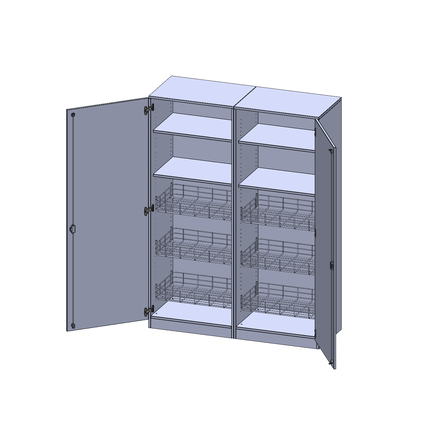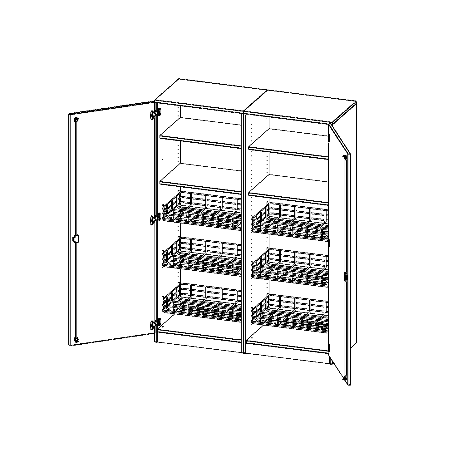 Alle Schränke werden aus melaminharzbeschichteter E1-Feinspanplatte gefertigt, die FSC zertifiziert und formaldehydfrei sind. Als Kanten verwenden wir besonders robuste 2 mm starke ABS Kanten, die unter hoher Temperatur fest verleimt werden. Bitte wählen Sie Ihr Wunschdekor aus unserer Dekorpalette aus. Die Einlegeböden sind im Raster von 32 mm verstellbar. Unsere hochwertigen Bodenträger verfügen über einen "Ausziehstop", so wird verhindert, dass Böden mit Inhalt darauf aus dem Regal oder Schrank rutschen können. Die Türen lassen sich dank 270° öffnender Scharniere an den Korpus anlegen. Sie sind mit einem Schloss verschließbar. An den Türen befindet sich eine Staublippe.