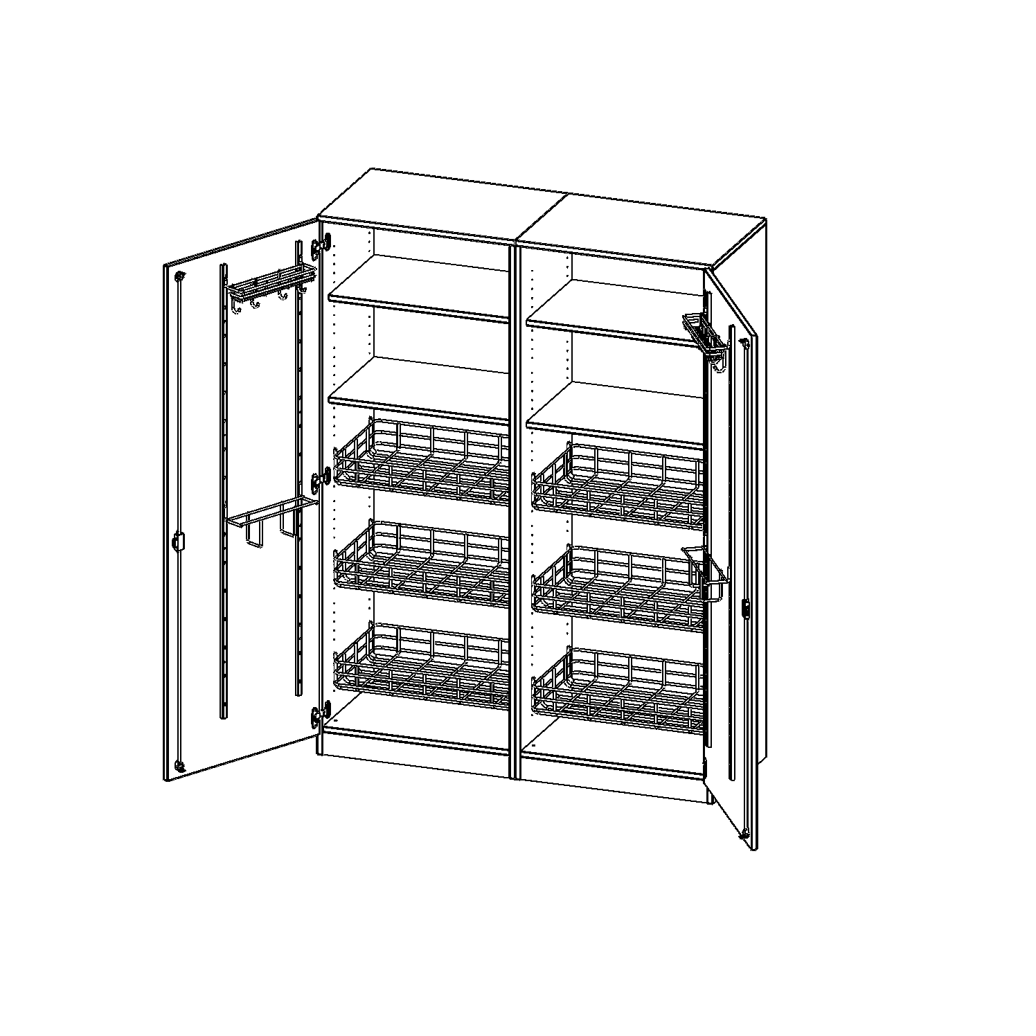 Die Sportschränke der evo180 Serie bieten ausreichend Platz für Bälle, Spielsachen und andere Utensilien für den Sportunterricht.. Die Türen sind wahlweise mit oder ohne Halterungen für Kleinteile und Springseile ausgestattet.