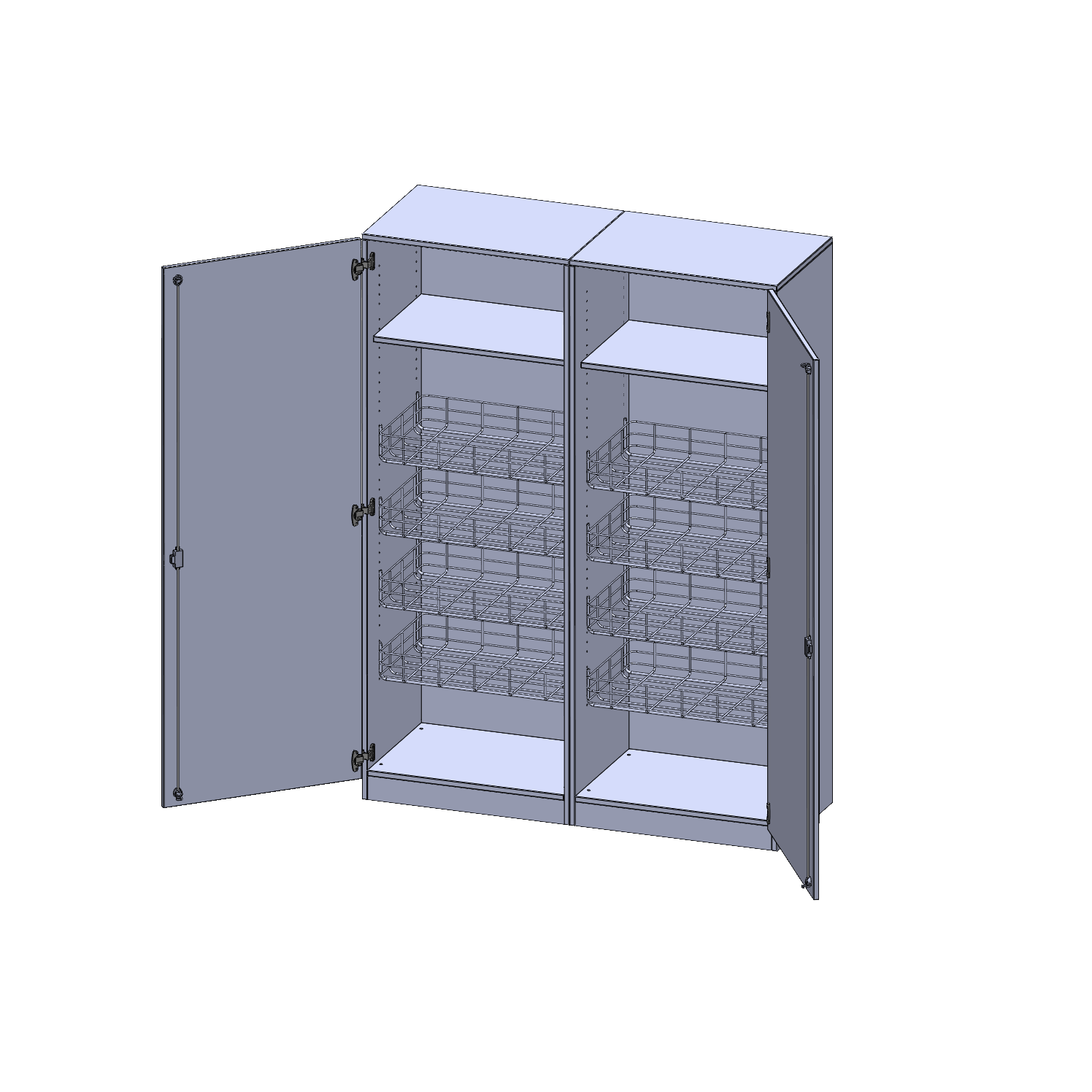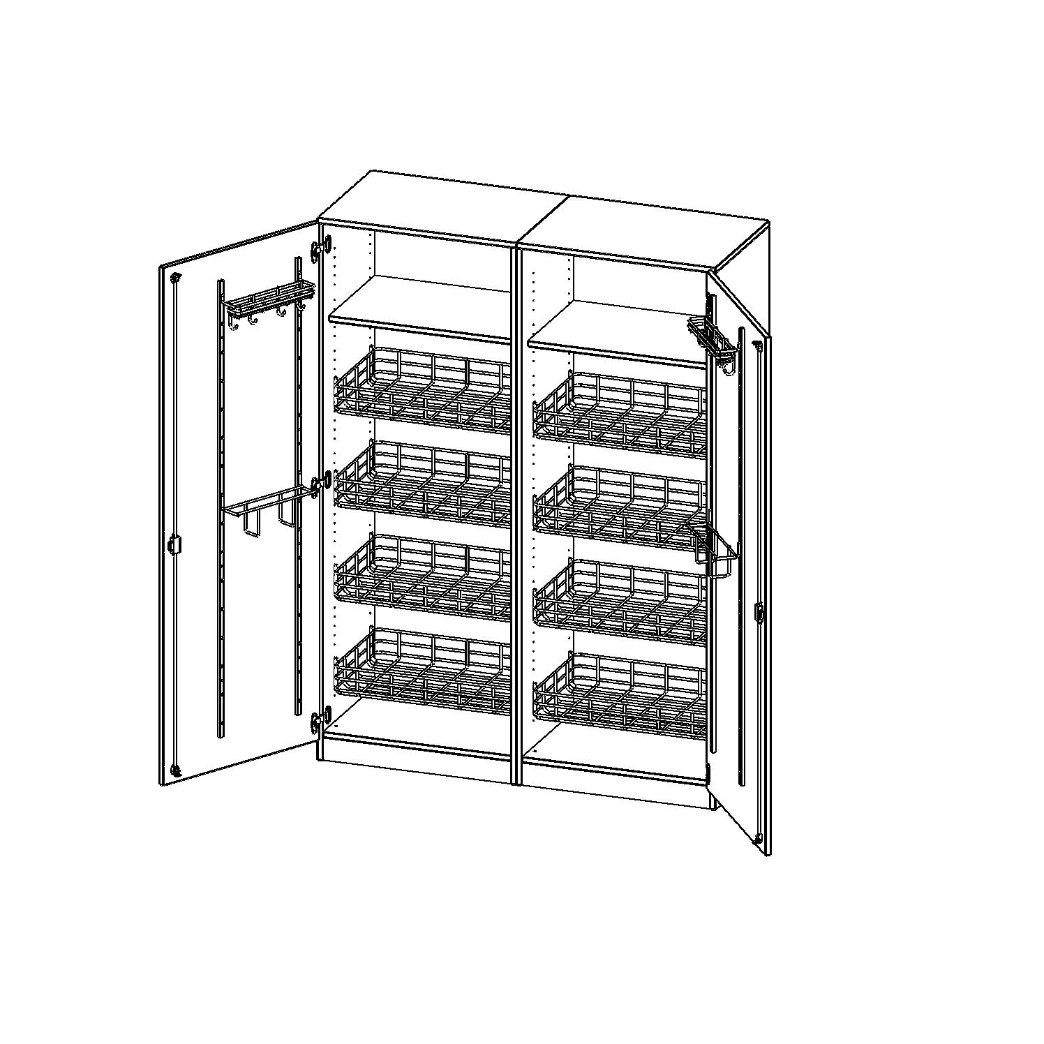 Alle Schränke werden aus melaminharzbeschichteter E1-Feinspanplatte gefertigt, die FSC zertifiziert und formaldehydfrei sind. Als Kanten verwenden wir besonders robuste 2 mm starke ABS Kanten, die unter hoher Temperatur fest verleimt werden. Bitte wählen Sie Ihr Wunschdekor aus unserer Dekorpalette aus. Die Einlegeböden sind im Raster von 32 mm verstellbar. Unsere hochwertigen Bodenträger verfügen über einen "Ausziehstop", so wird verhindert, dass Böden mit Inhalt darauf aus dem Regal oder Schrank rutschen können. Die Türen lassen sich dank 270° öffnender Scharniere an den Korpus anlegen. Sie sind mit einem Schloss verschließbar. An den Türen befindet sich eine Staublippe.