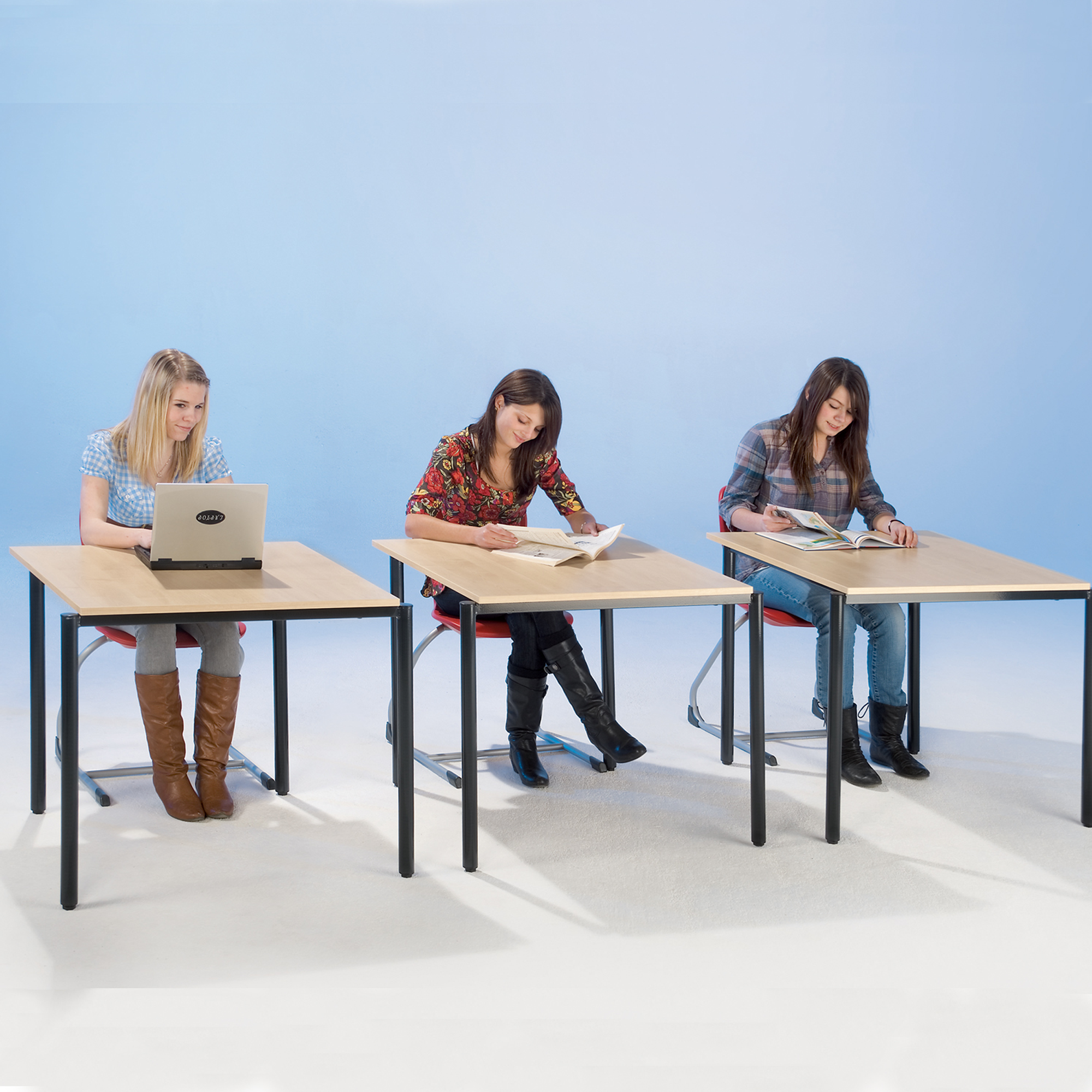 Die Tischplatte des Schülertisches ist aus einer 19 mm starken, melaminharzbeschichteten Spanplatte in der umweltfreundlichen E1- Qualität hergestellt. Sie ist besonders leicht zu reinigen und kann feucht abgewischt werden.