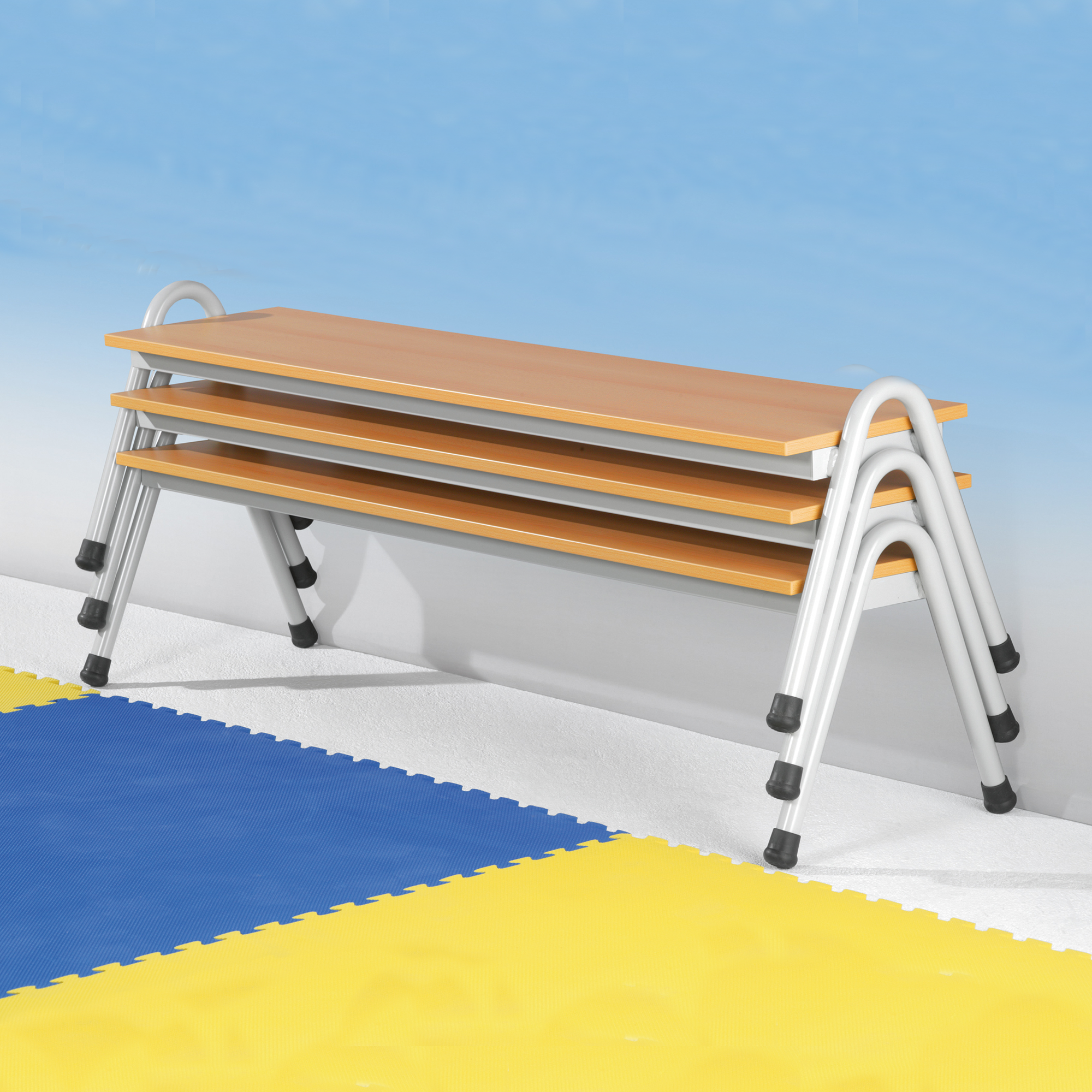 Ein besonderes Highlight dieser Sitzbank ist ihre Stapelbarkeit, die eine platzsparende Lagerung ermöglicht. Diese durchdachte Konstruktion macht die Bank besonders praktisch für Schulen, Büros, Wartezimmer und viele andere Einsatzbereiche, in denen Flexibilität und Funktionalität gefragt sind.