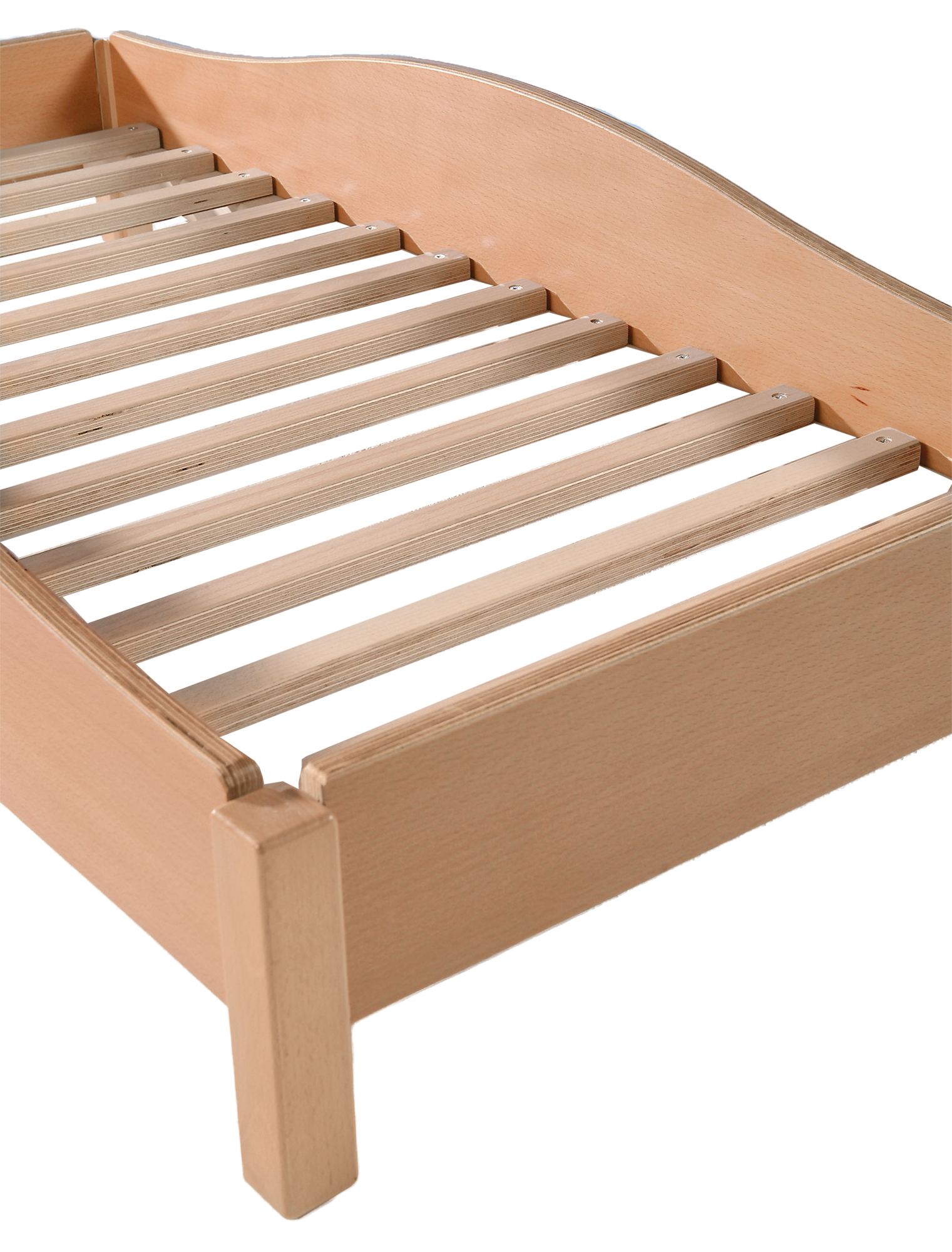 Stapelbare Betten erleichtern das Handling in Schlafräumen. Die Kleinsten finden in Betten mit den Maßen (B/B/T) 124x27x64 ihre Ruhe. Die geschwungenen Seitenteile auf stabilem Birke-Muliplexmaterial schützen die Kinder vor dem Herausrollen. Die konstruktive Anordnung der Beine ermöglicht die Stapelfähigkeit. Die Stapelhöhe weiterer Betten jeweils 20 cm. Die Lieferung der 8 cm hohen Matraze ist im Lieferumfang enthalten. Die Matraze ruht auf federnden Leisten, die zugleich die hygienisch erforderliche Unterlüftung der Matraze sicherstellen.