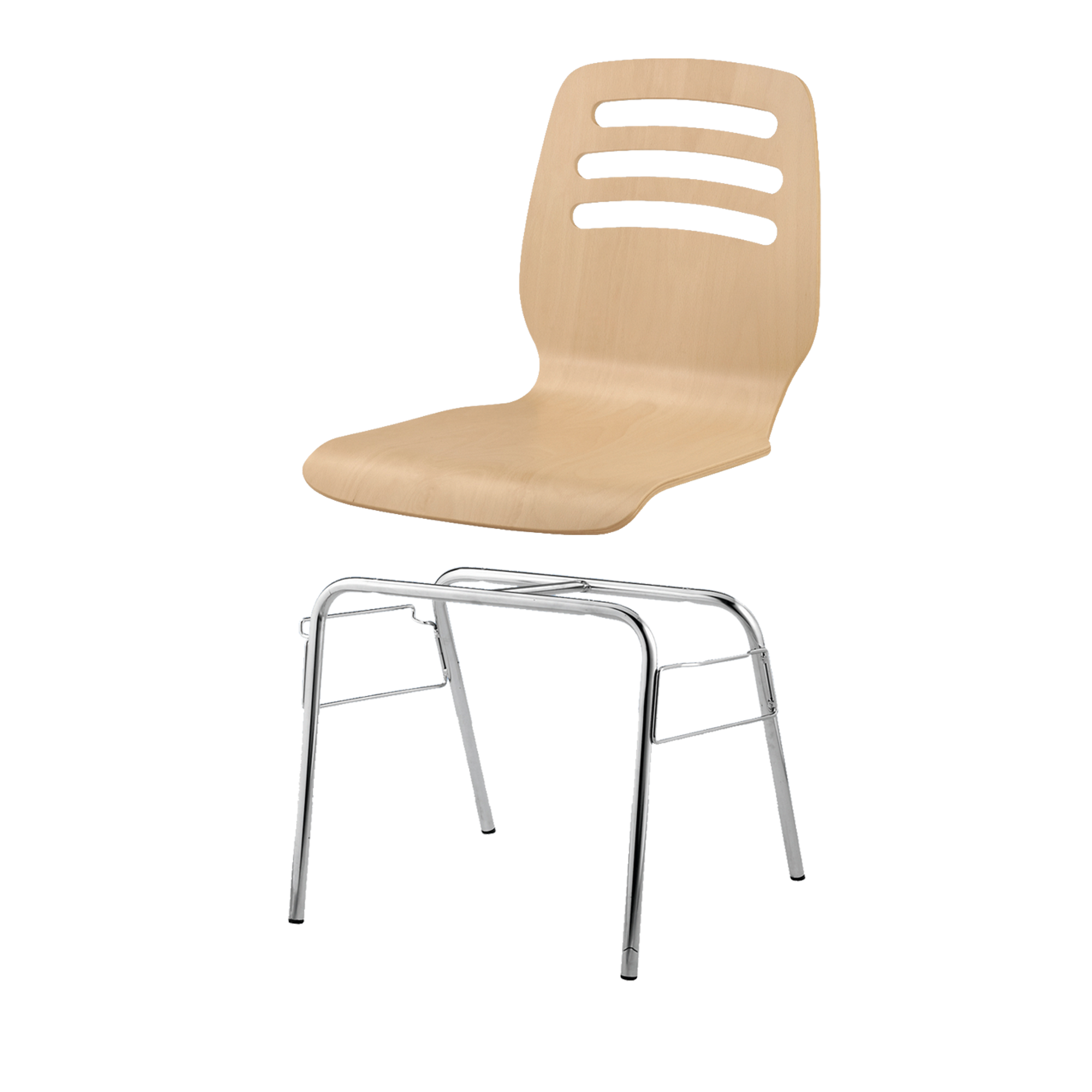 Der stapelbare Schalenstuhl mit Sitzschale "Mailand" kann mit Rundrohrgestellen in unterschiedlichen Bauformen, mit und ohne Armlehnen und / oder Reihenverbindung bestellt werden. Die Sitzschale besteht aus mehrfach verleimtem formgepreßtem Bucheschichtholz und ist ergonomisch gearbeitet, natur lackiert.