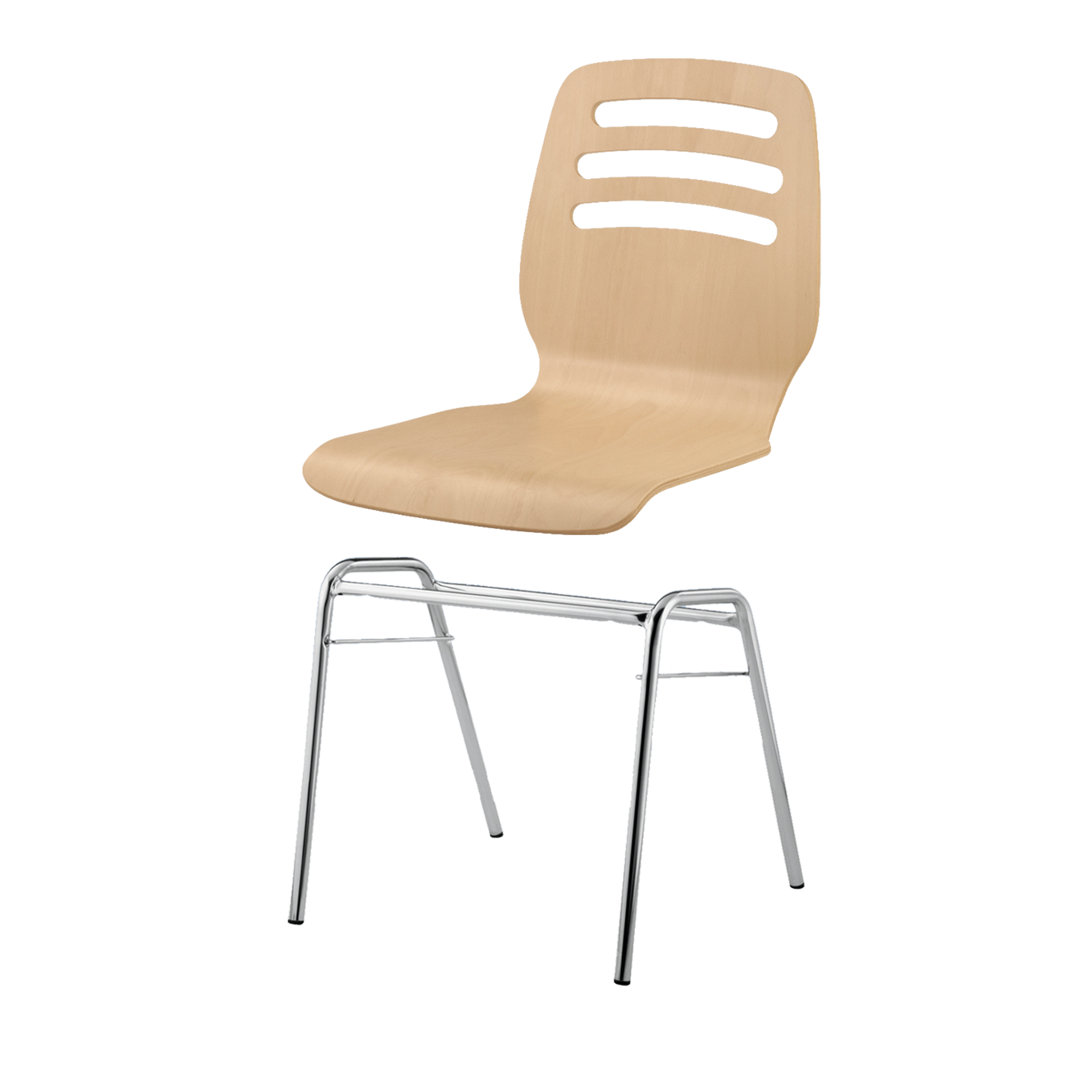 Der stapelbare Schalenstuhl mit Sitzschale "Mailand" kann mit Rundrohrgestellen in unterschiedlichen Bauformen, mit und ohne Armlehnen und / oder Reihenverbindung bestellt werden. Die Sitzschale besteht aus mehrfach verleimtem formgepreßtem Bucheschichtholz und ist ergonomisch gearbeitet, natur lackiert.