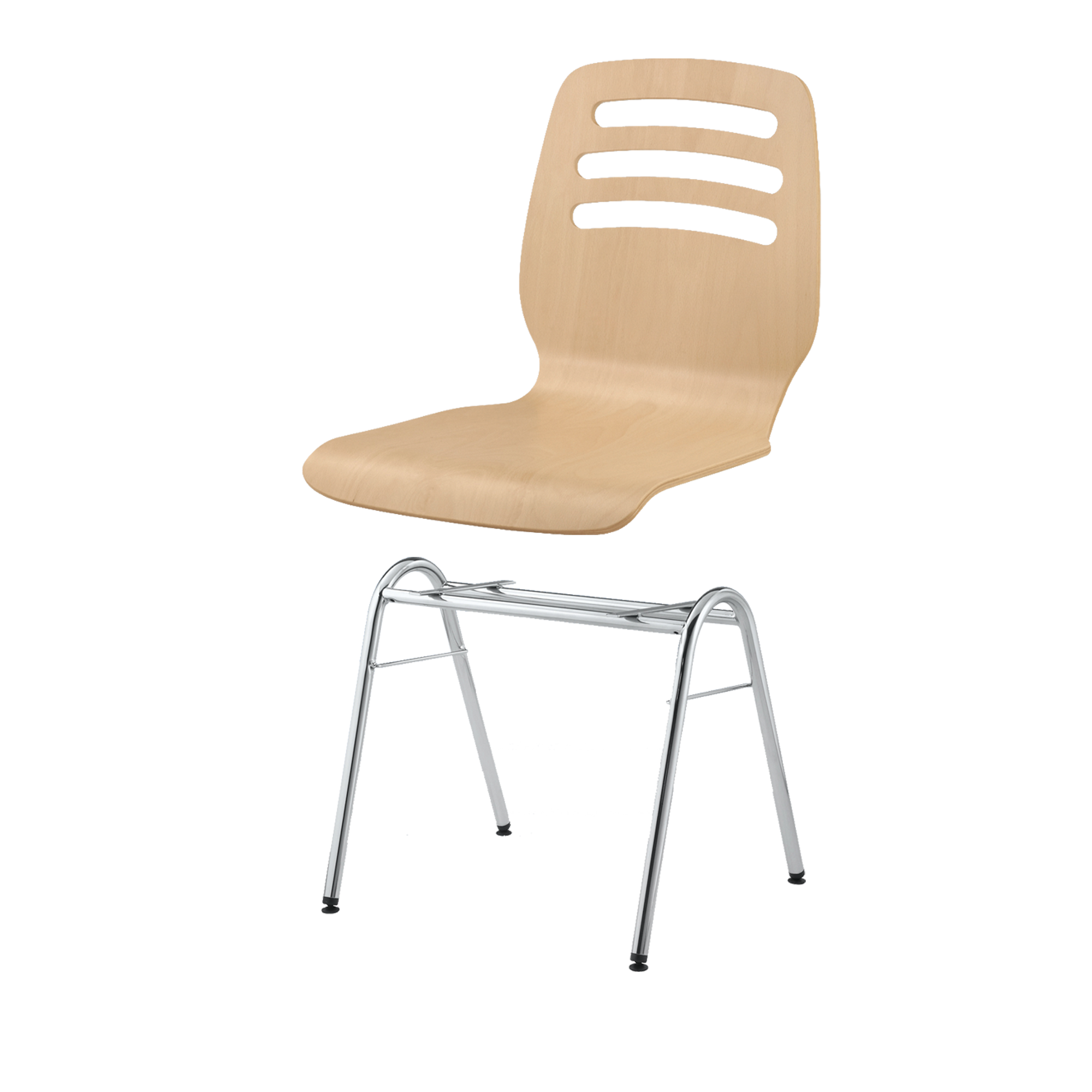 Der stapelbare Schalenstuhl mit Sitzschale "Mailand" kann mit Rundrohrgestellen in unterschiedlichen Bauformen, mit und ohne Armlehnen und / oder Reihenverbindung bestellt werden. Die Sitzschale besteht aus mehrfach verleimtem formgepreßtem Bucheschichtholz und ist ergonomisch gearbeitet, natur lackiert.