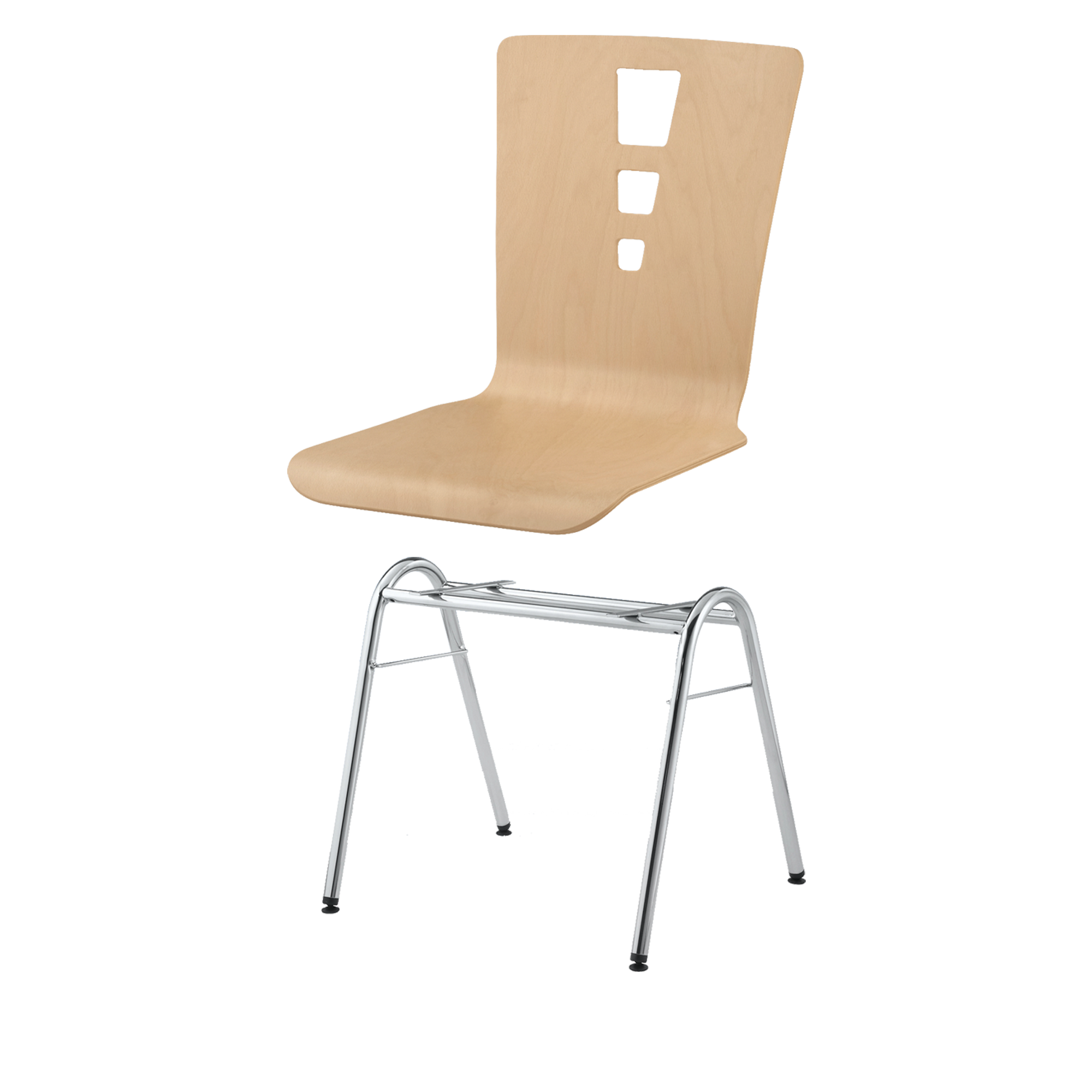 Der stapelbare Schalenstuhl mit Sitzschale "Paris" kann mit Rundrohrgestellen in unterschiedlichen Bauformen, mit und ohne Armlehnen und / oder Reihenverbindung bestellt werden. Die Sitzschale besteht aus mehrfach verleimtem formgepreßtem Bucheschichtholz und ist ergonomisch gearbeitet, natur lackiert.
