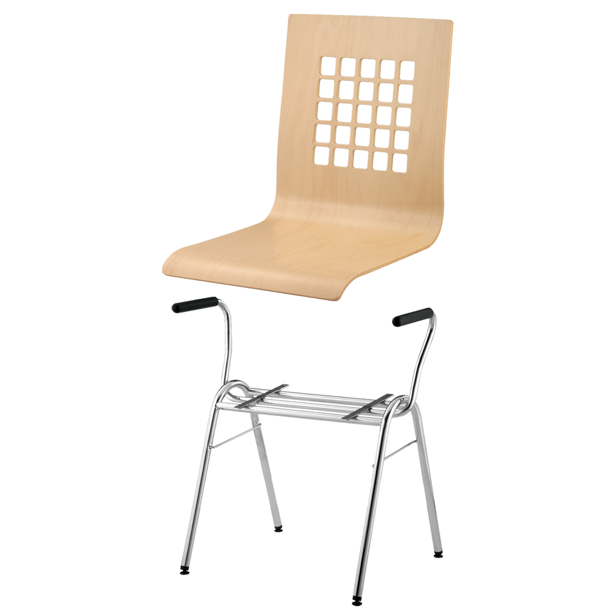 Optional sind diese Stühle mit Sitz- und Rückenpolster, mit Griffloch oder Designfräsungen lieferbar.
