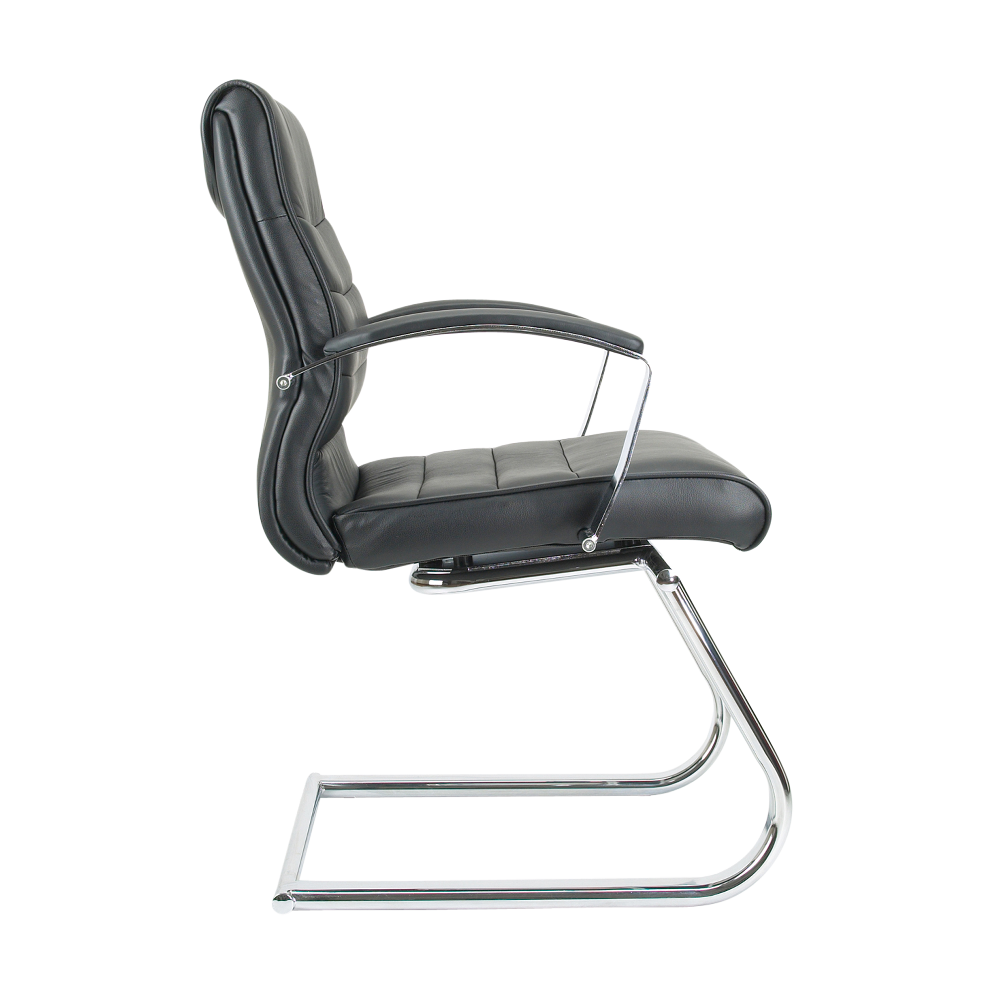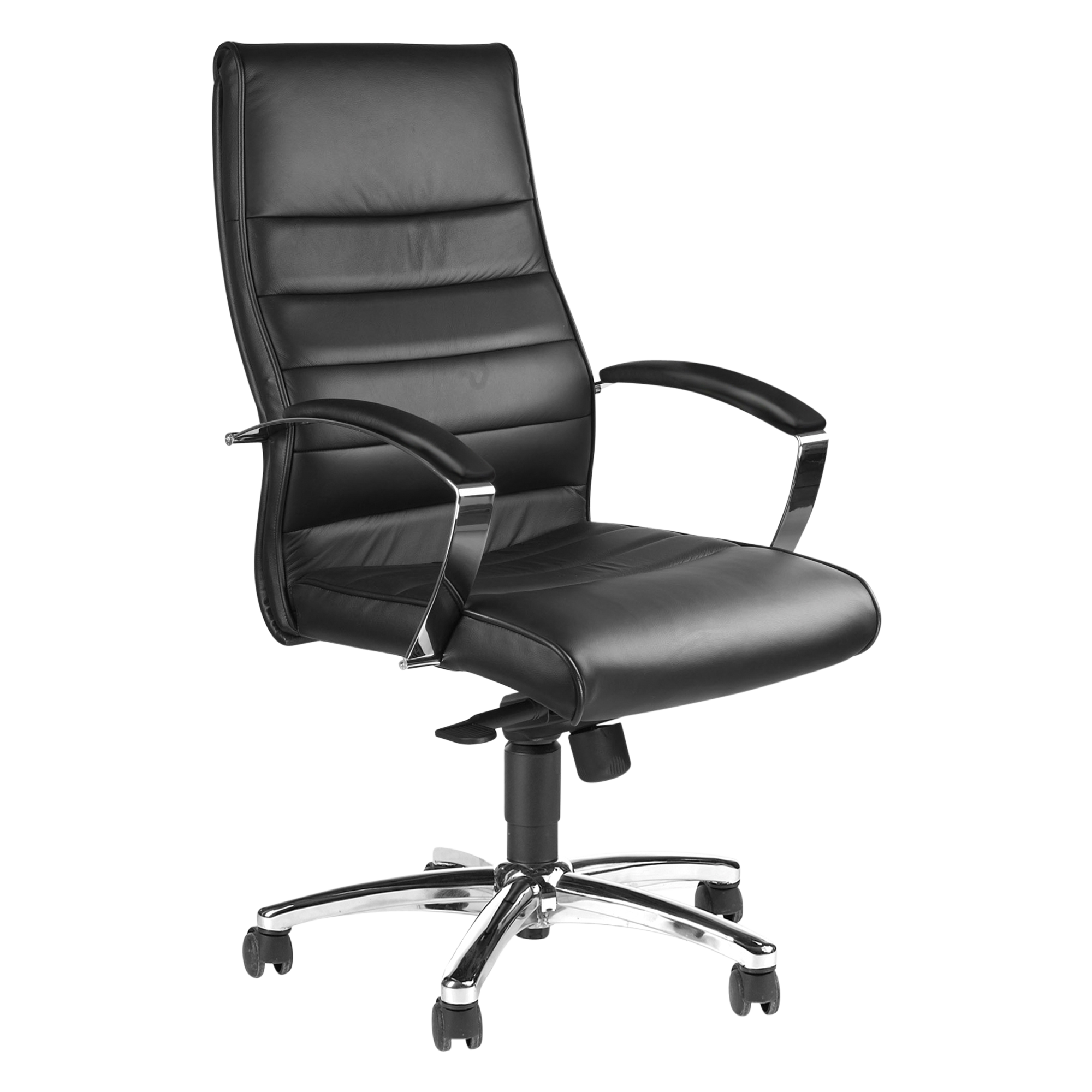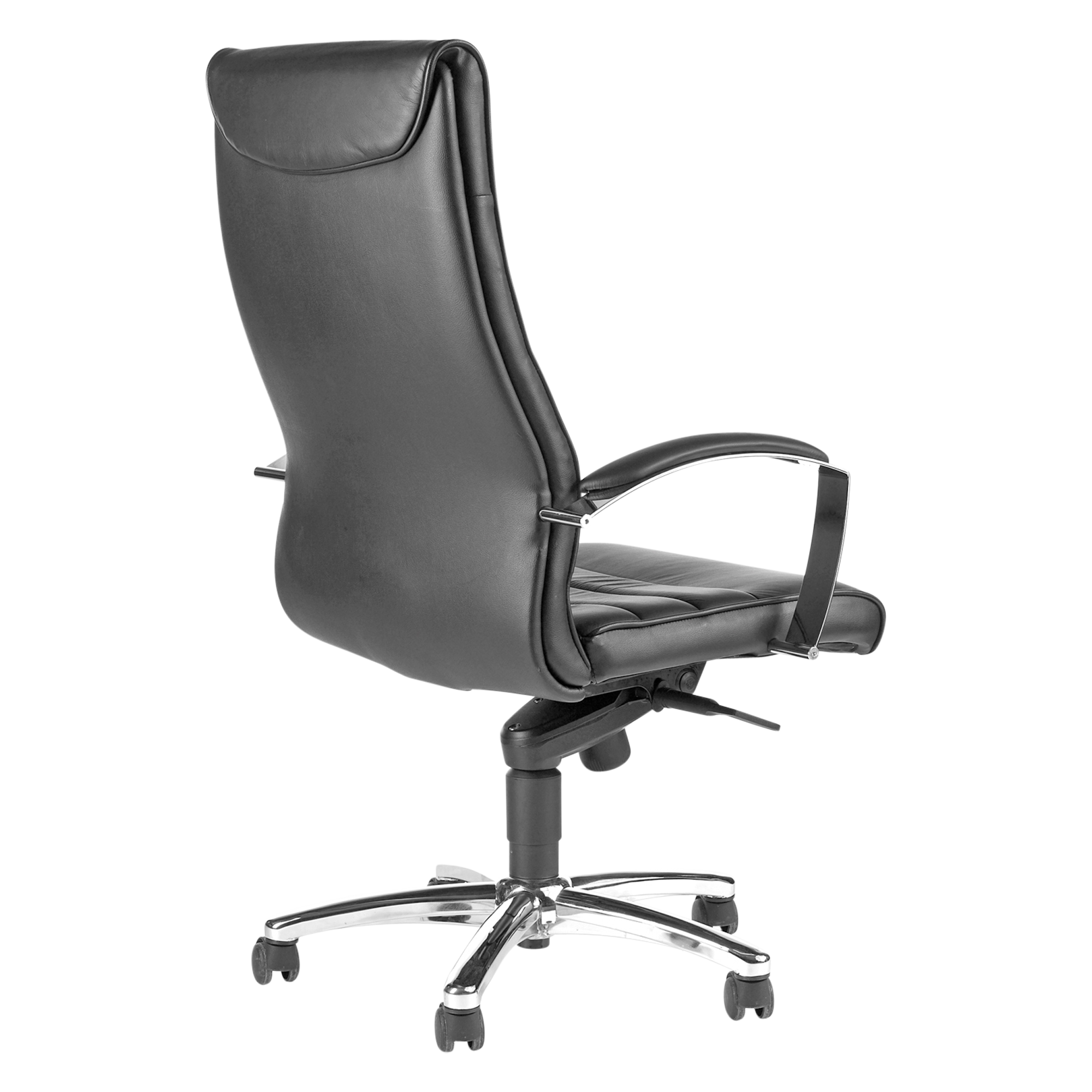 Das formschöne und stabile Untergestell verleiht dem Stuhl nicht nur eine ansprechende Optik, sondern auch die notwendige Stabilität. Die gewichtsverstellbaren Rollen mit Feststellern sorgen für sicheren Stand und Mobilität. Serienmäßig ausgestattet mit stilvollen Armlehnen in Chrom und Leder in Schwarz, bietet der Stuhl Top Deluxe sowohl Funktionalität als auch Eleganz.