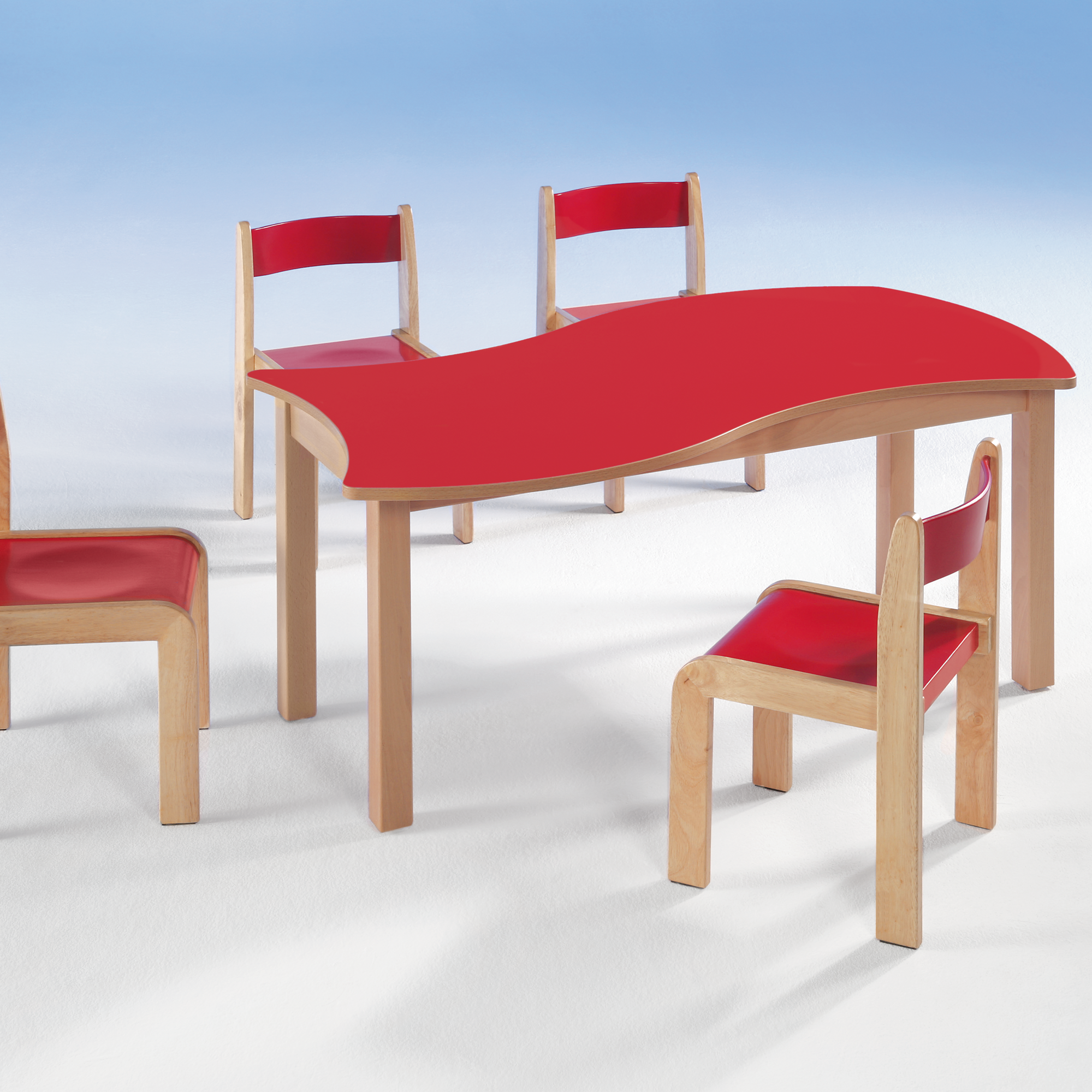 Der Swing-It Woody Rechteckwellentisch ist ein Massivholztisch mit einer 19 mm starken, melaminharzbeschichteten Spanplatte in der umweltfreundlichen E1-Qualität hergestellt. Sie ist besonders leicht zu reinigen und kann natürlich feucht abgewischt werden. Die Tischplatte ist in fröhlichen Dekoren erhältlich, die Tischkante ist immer im Dekor Buche gehalten.