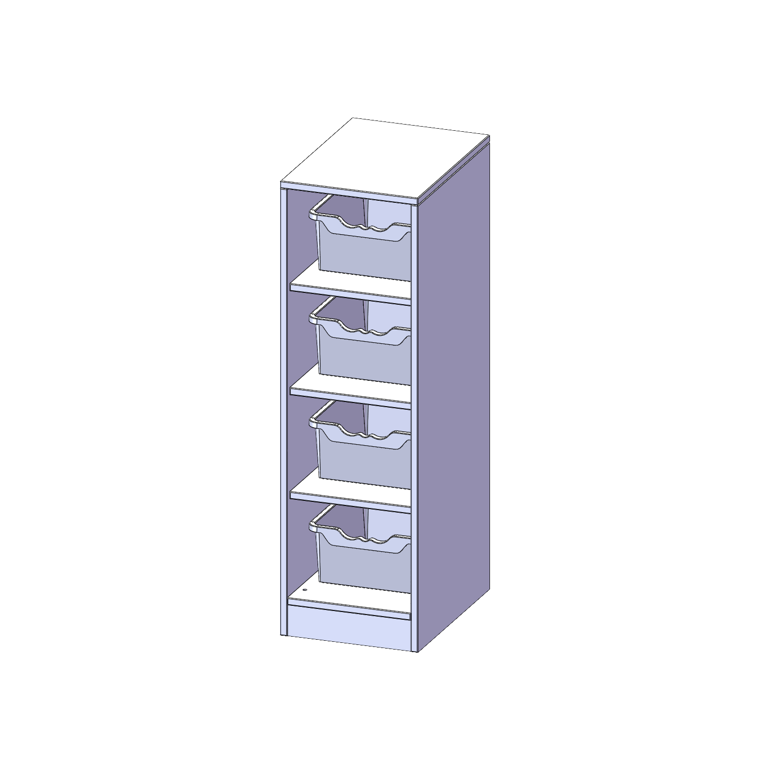 Breite 36,1 cm, Gesamthöhe 118 cm, 4 halbhohe Fächer, je Fach mit einer hohen ErgoTray Box