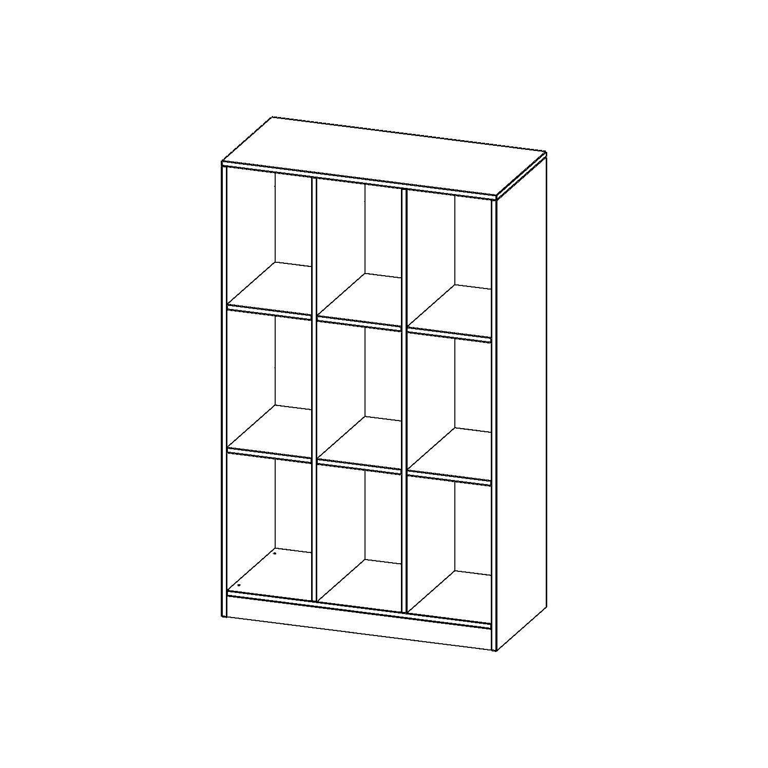 B/H/T: 104,5x172x50 cm, 9 hohe Fächer, mit Sockel (81 mm)