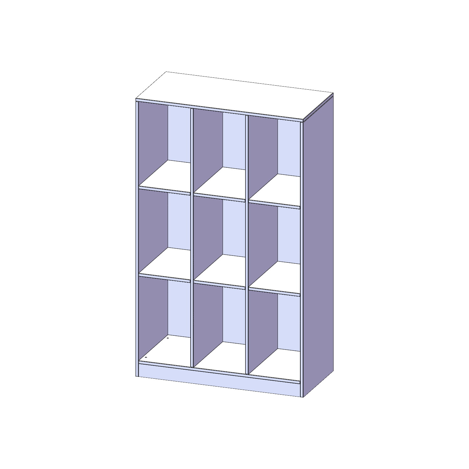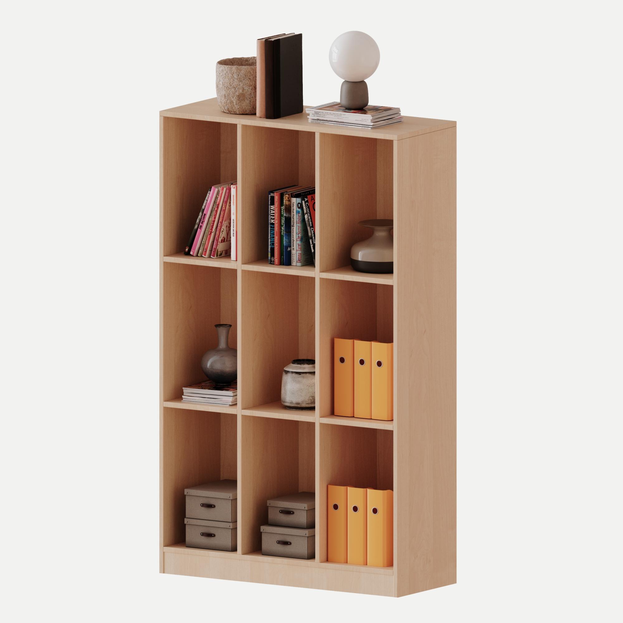 Breite 104,5 cm, Gesamthöhe 172 cm, 9 hohe Fächer, mit Sockel (81 mm)